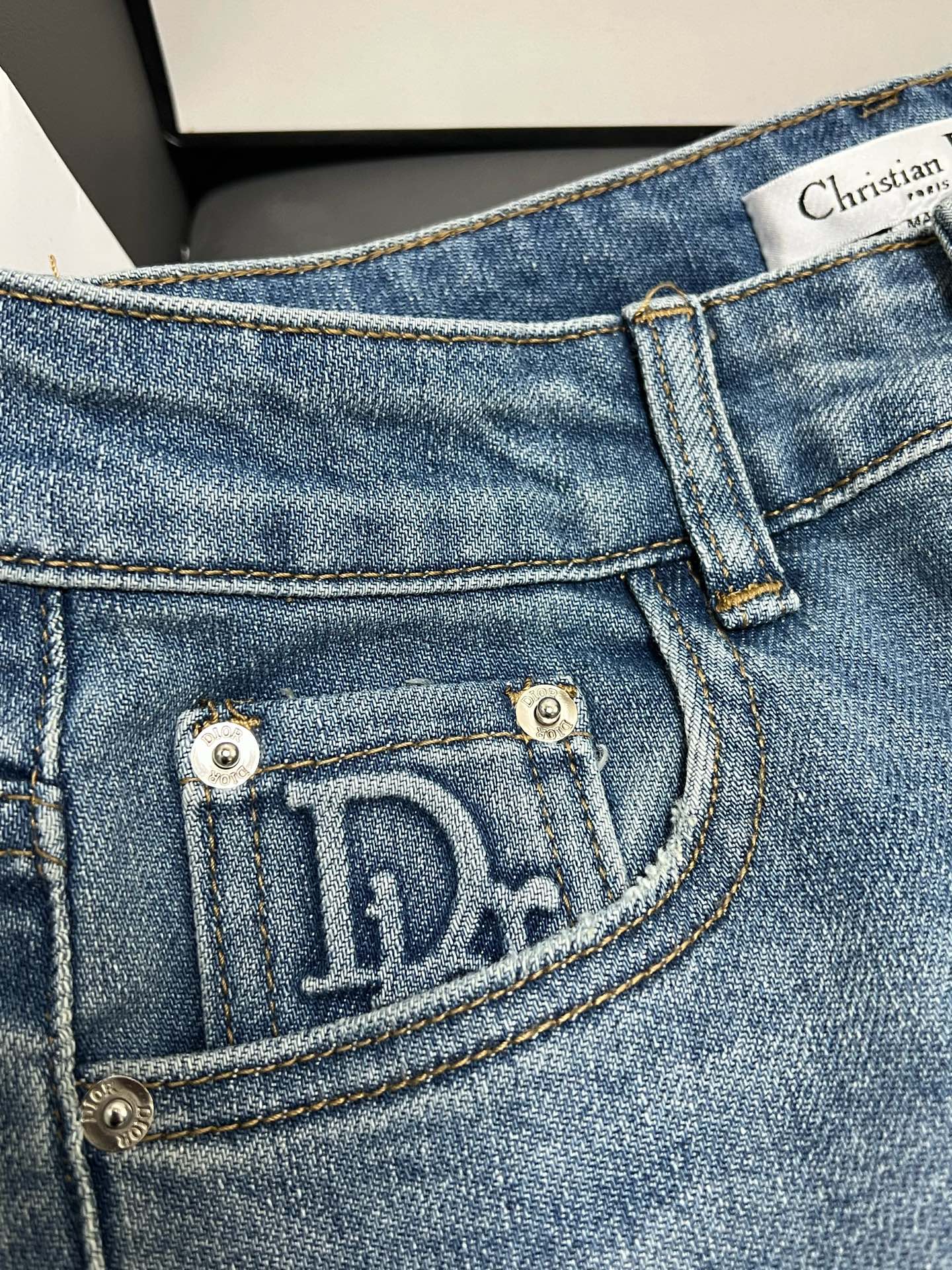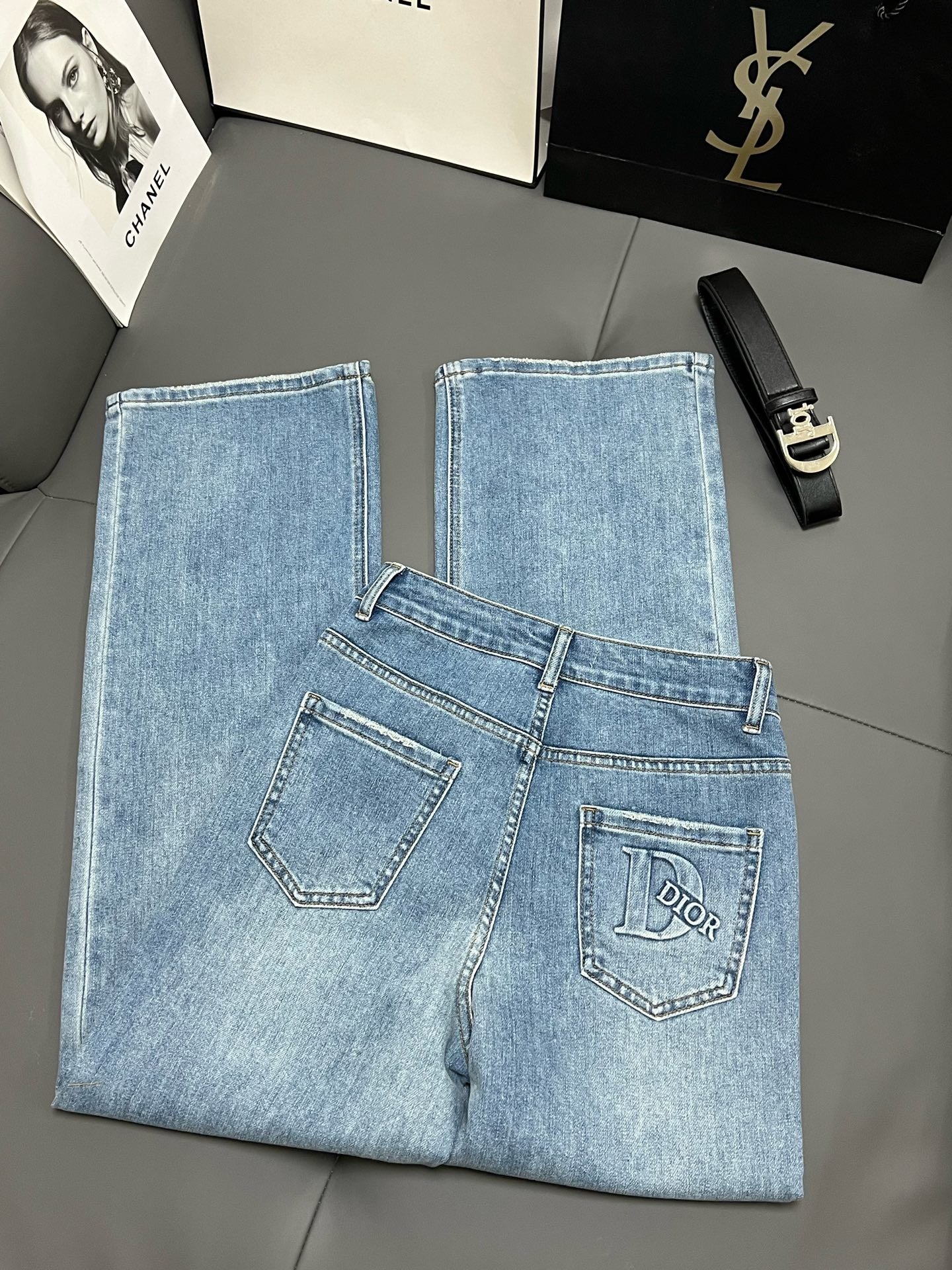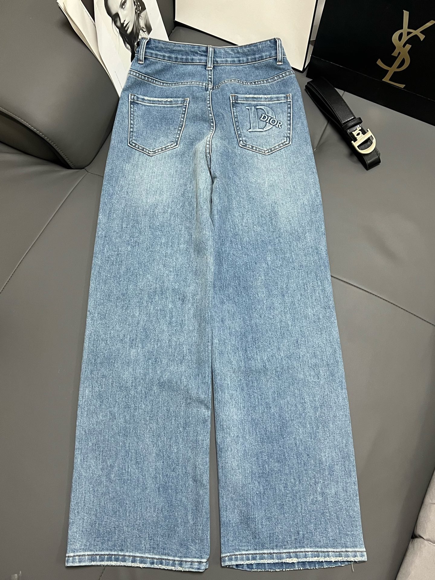 CD 2025 Belt Straight Slightly Stretch Jeans Denim Blue Cotton 109045