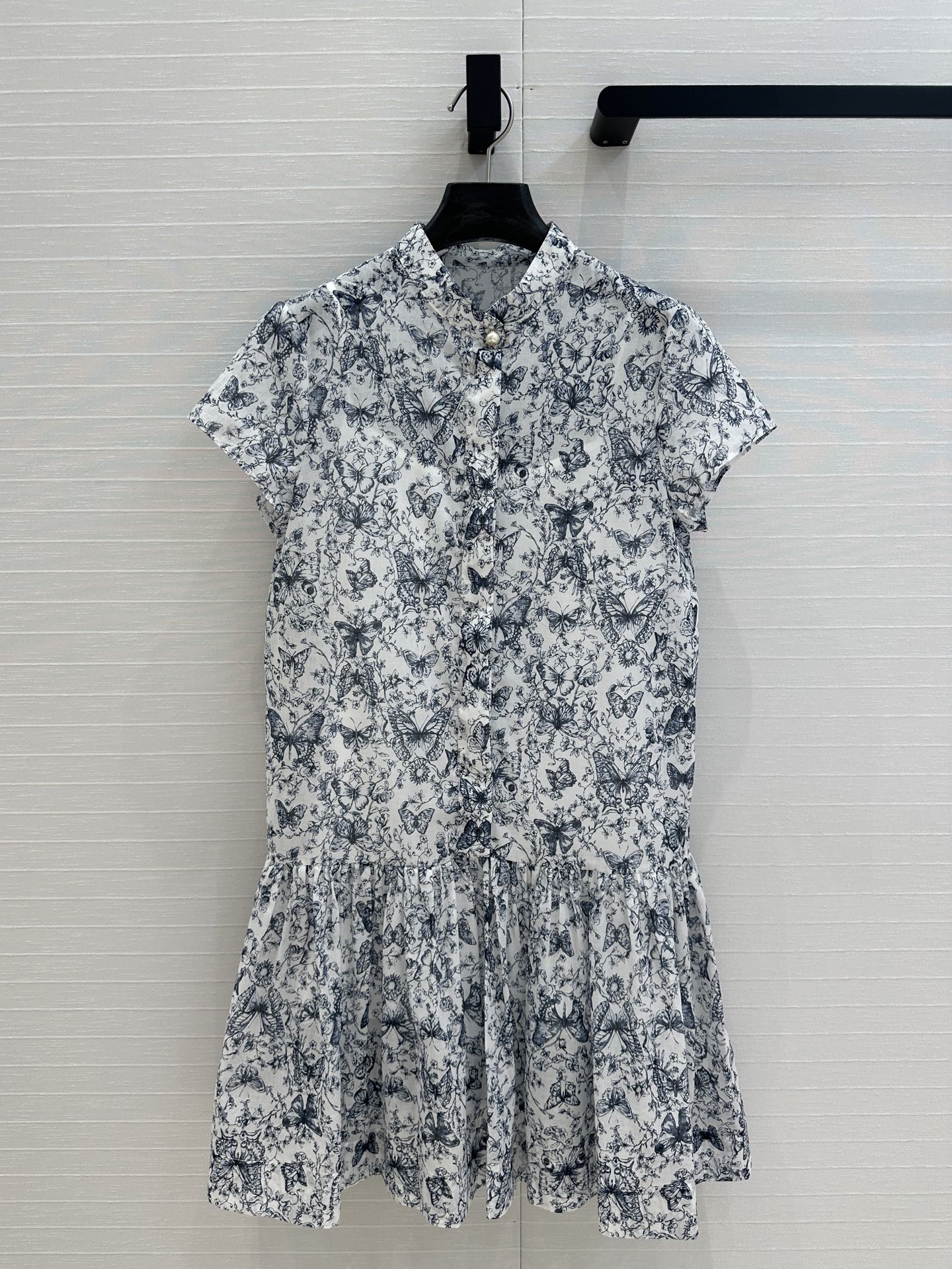 CD 2025 Butterfly Printed Long Skirt White mix Navy Blue Cotton
