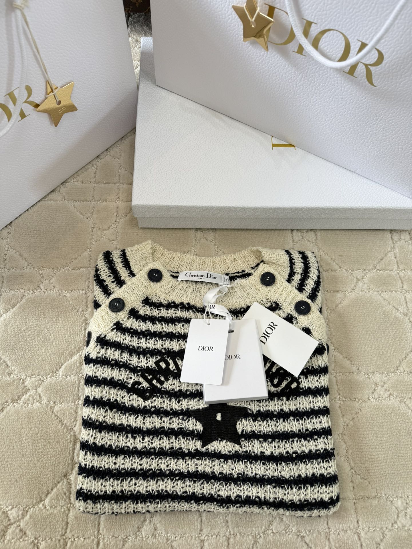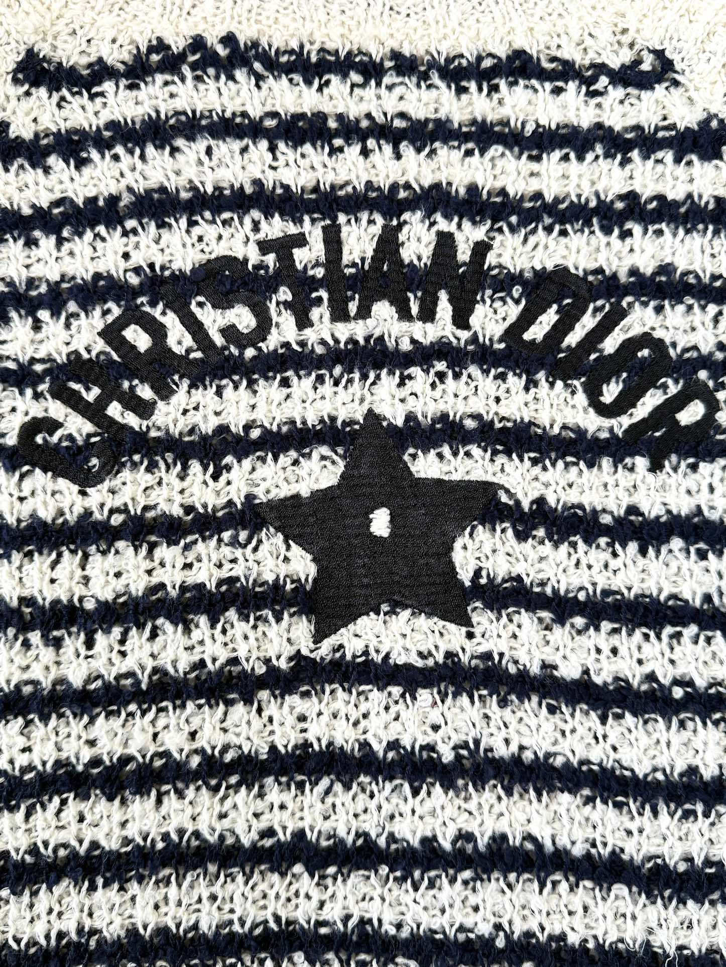 CD 2025 Striped Knitted Short Sleeves Beige mix Black Cotton