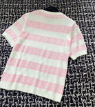 CD 2025 Striped Short-sleeved T-shirt Pink White tencel 606660