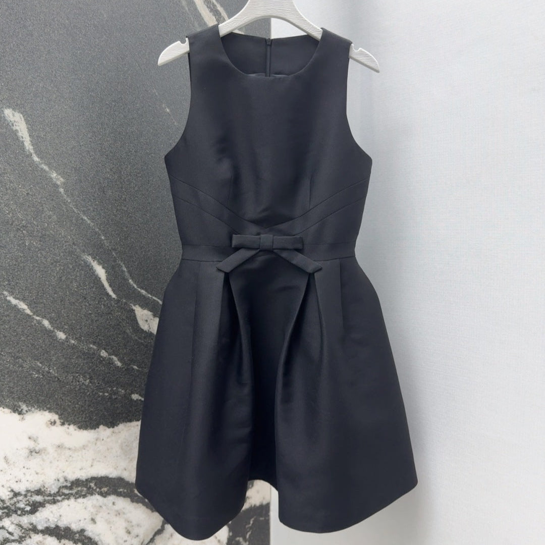 CD 25 Bow Sleeveless Mini Dress Black Satin