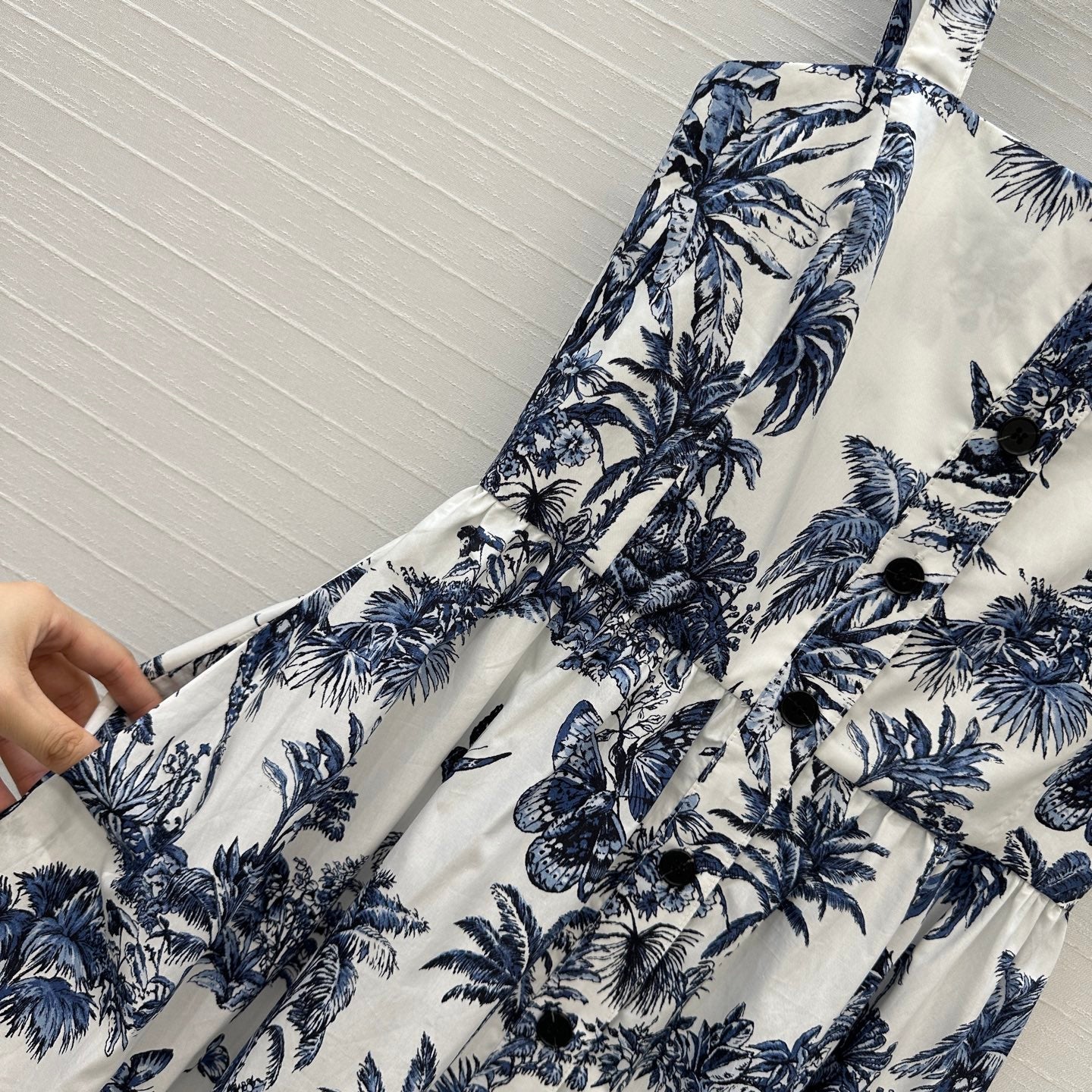 CD 25 Butterfly Coconut Print Tube Dress White Blue Cotton