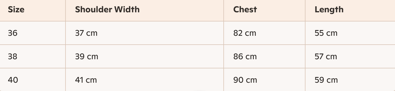 - Size : 36, 38, 40