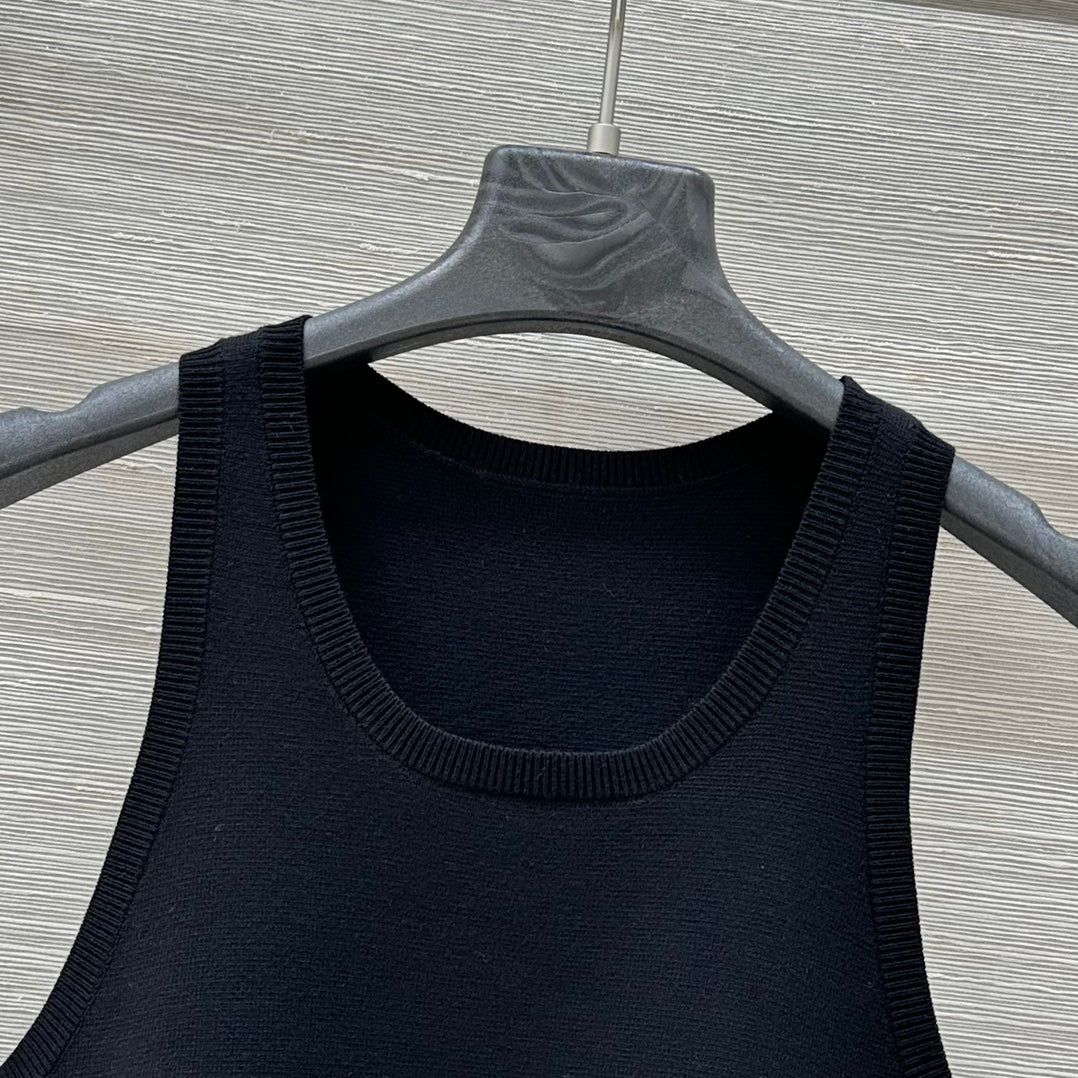 CD 25 Embroidery Knitted Vest Top Black Polyester Cotton