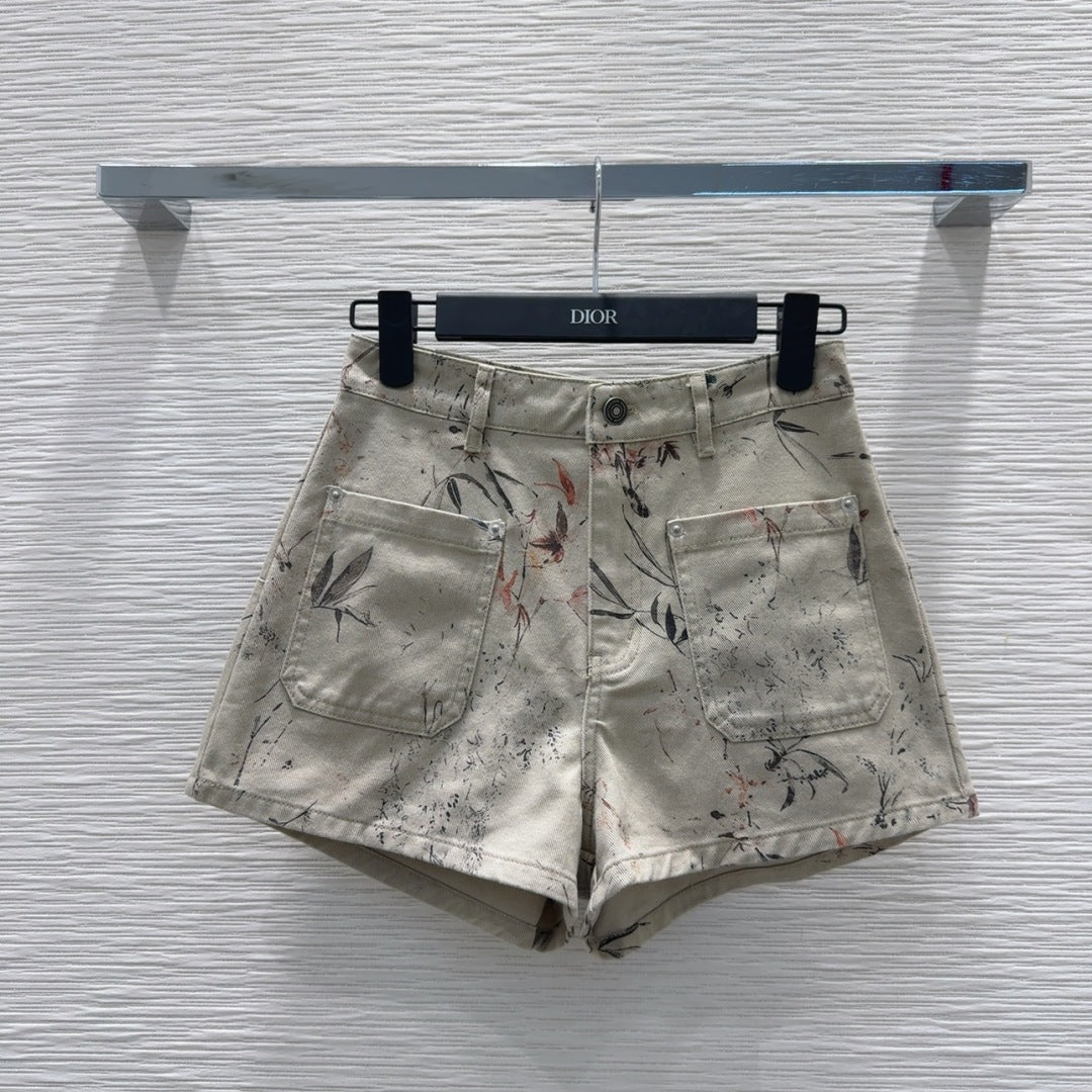 CD 25 Ink And Floral Short Beige Cotton