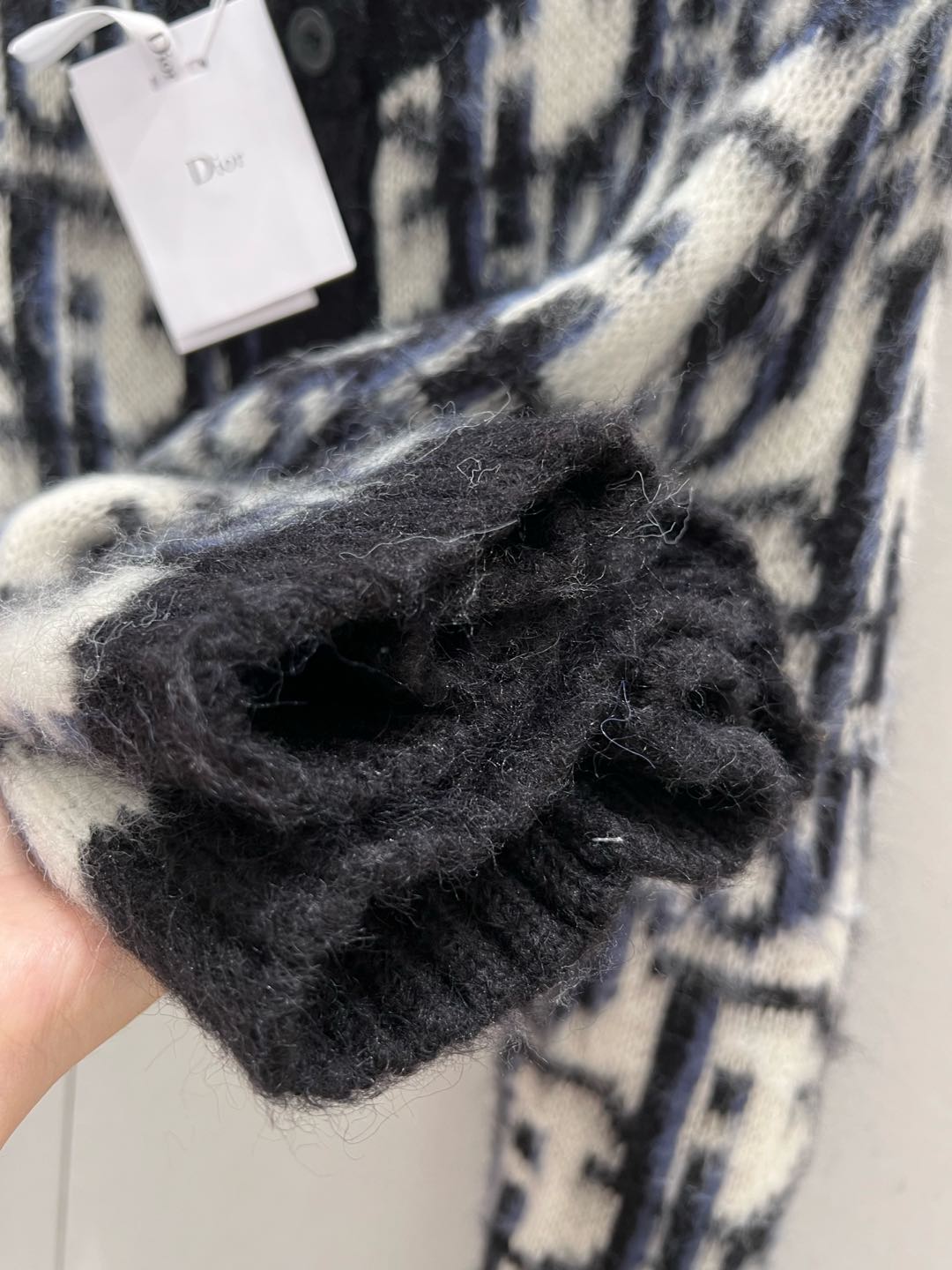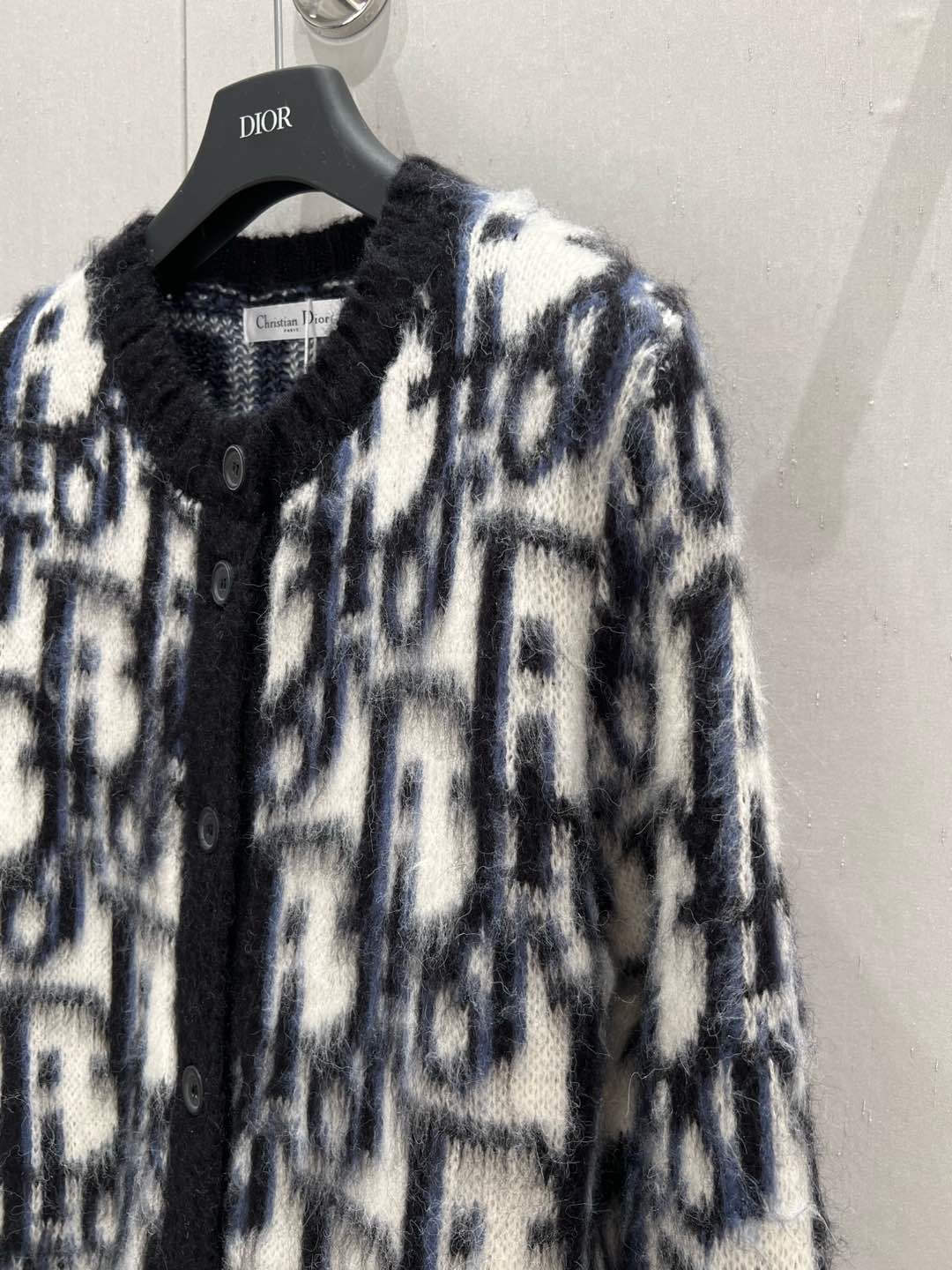CD 25 Knitted Round Neck Cardigan Black White Mohair wool 210006
