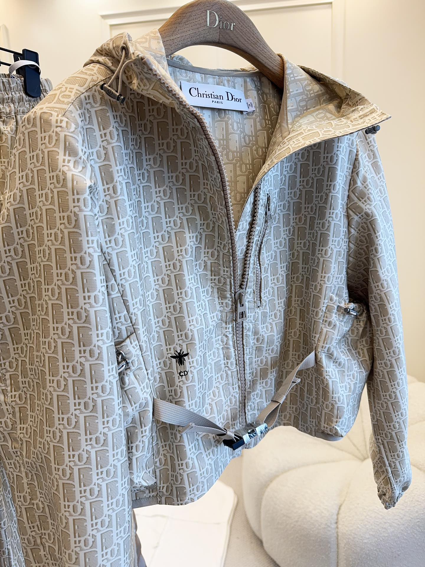 CD 25 Monogram Hoodie Light Beige Polyester
