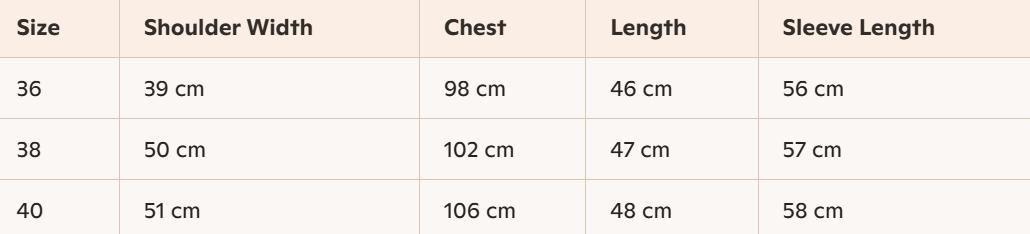 - Size : 36, 38, 40
