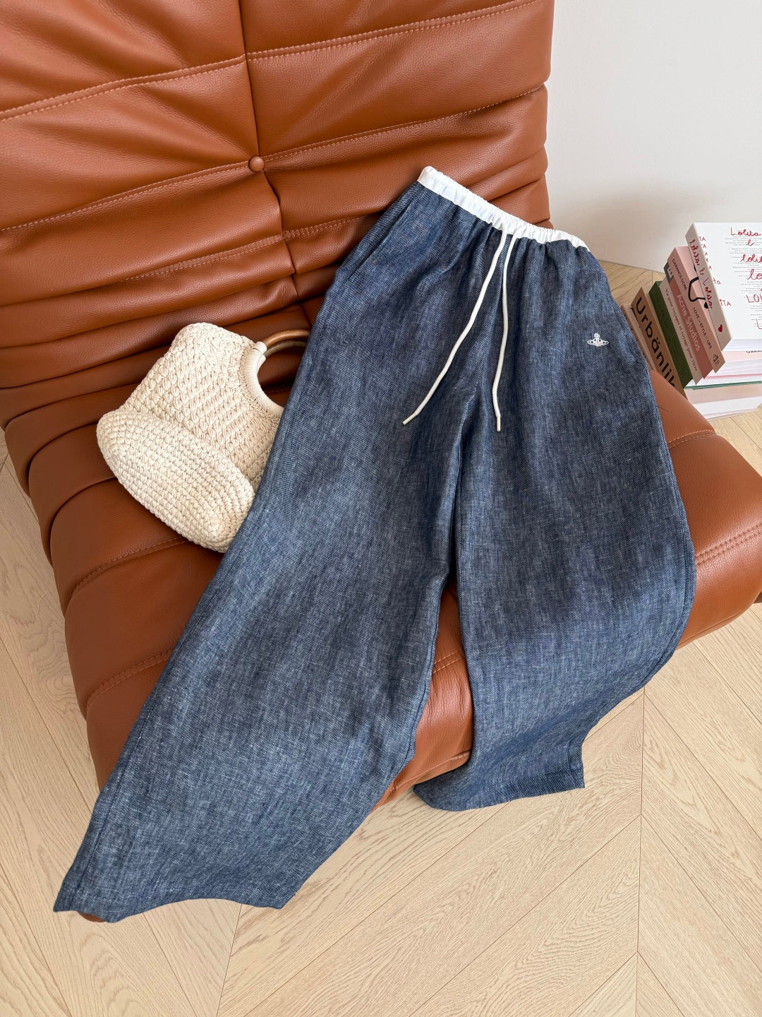 CD 25 Pants Blue White Linen