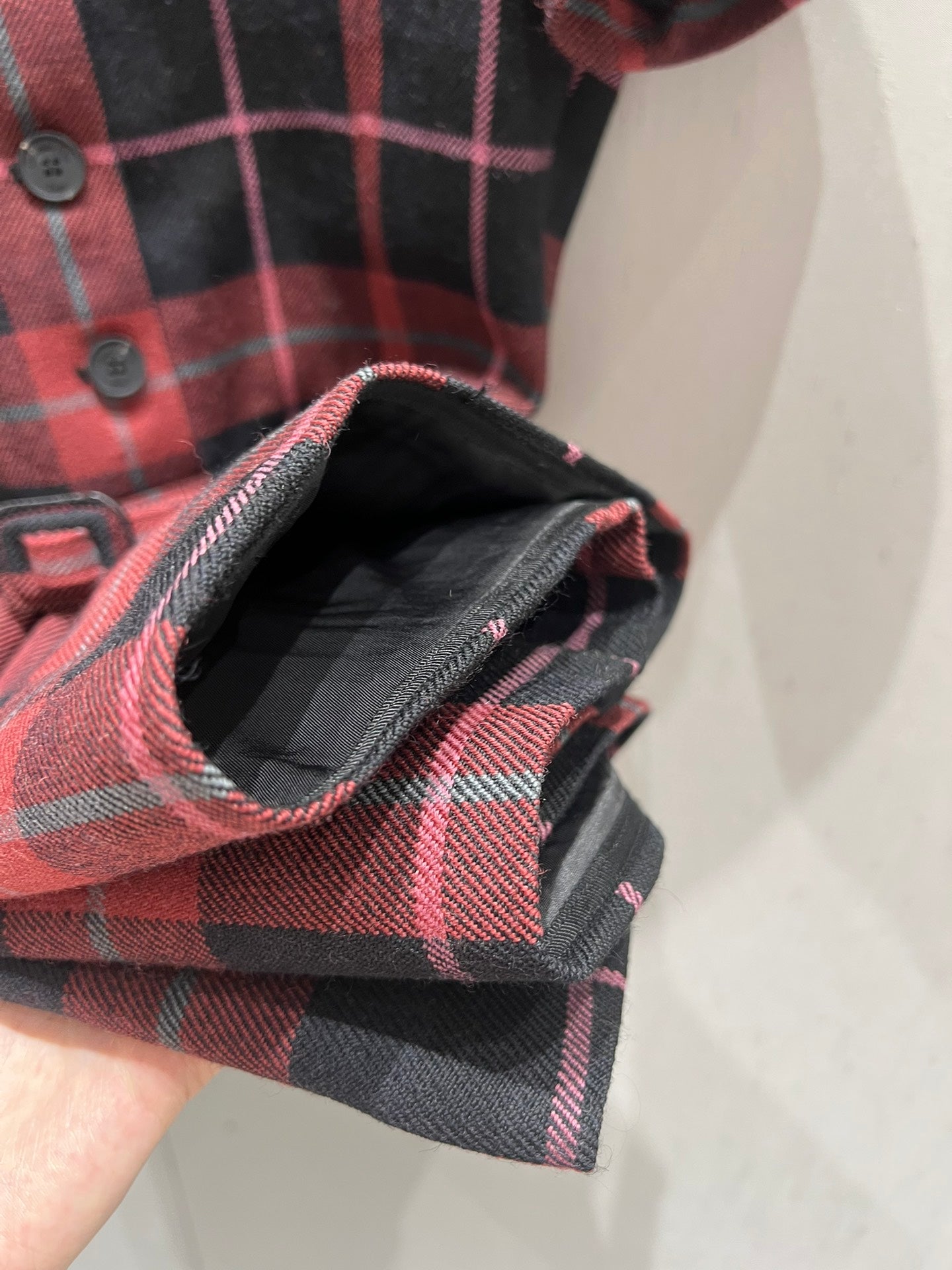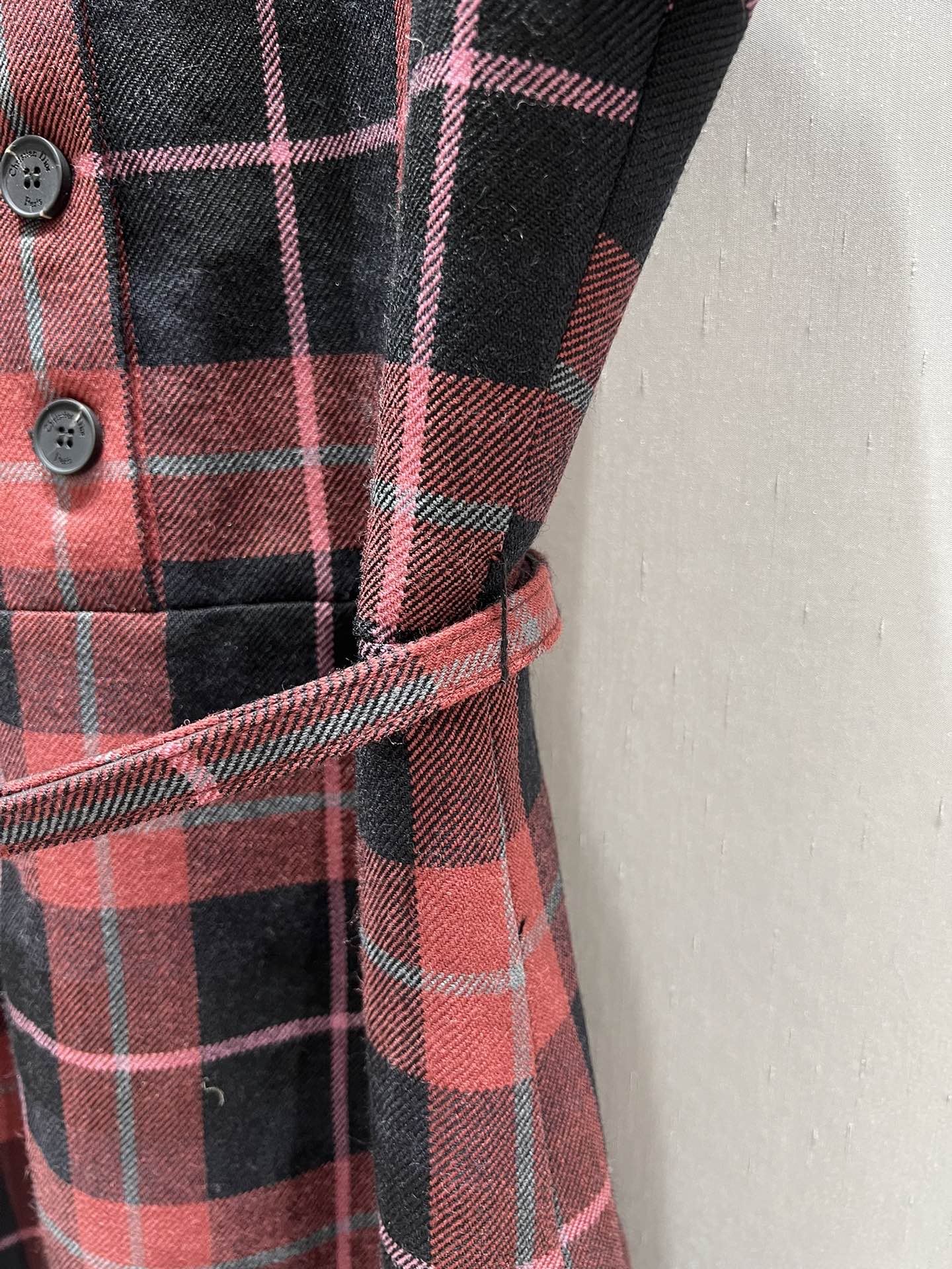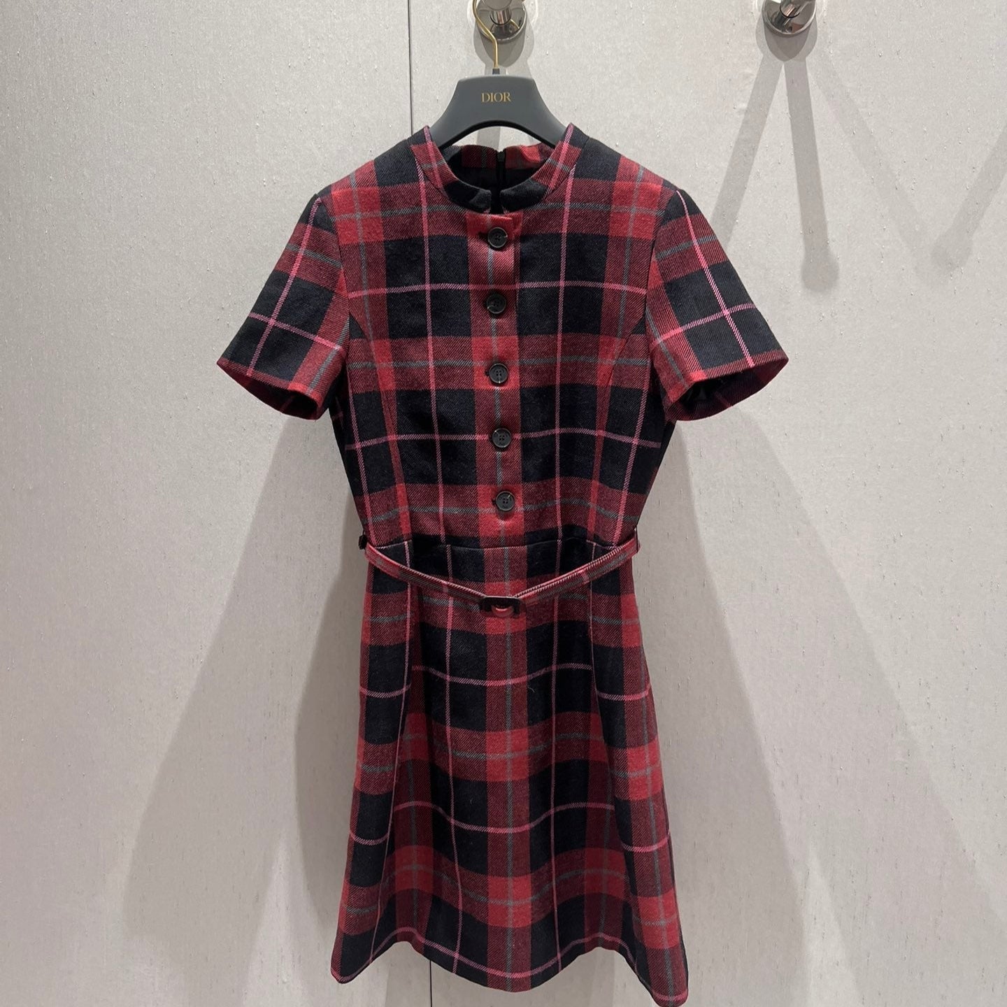 CD 25 Plaid Short-sleeved Dress Black Red Sheep Wool
