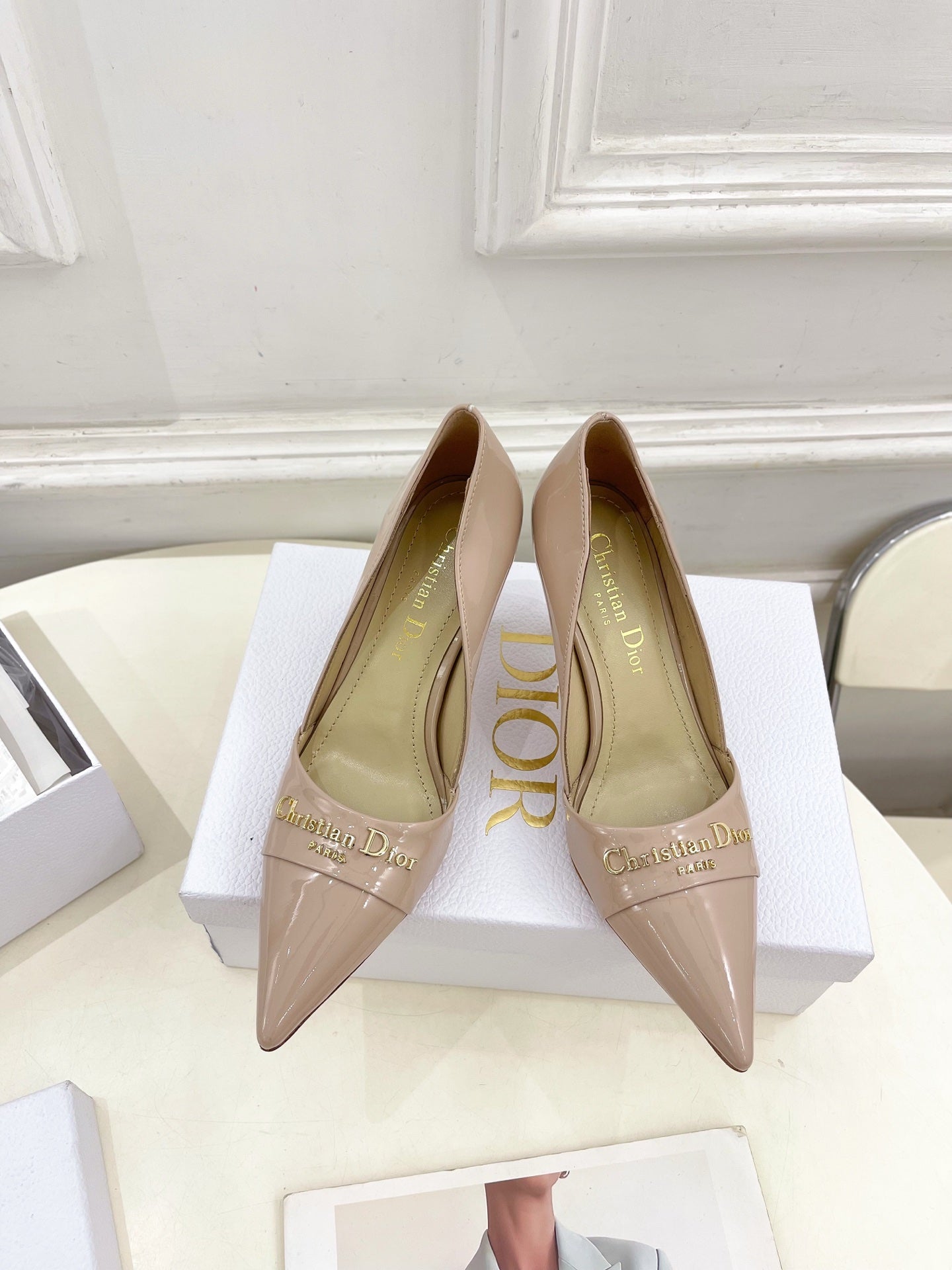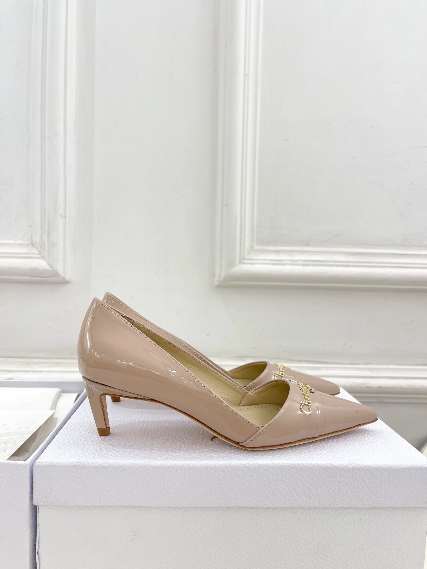 CD 25 Pump High Heels Pink Nude Patent Leather 307424