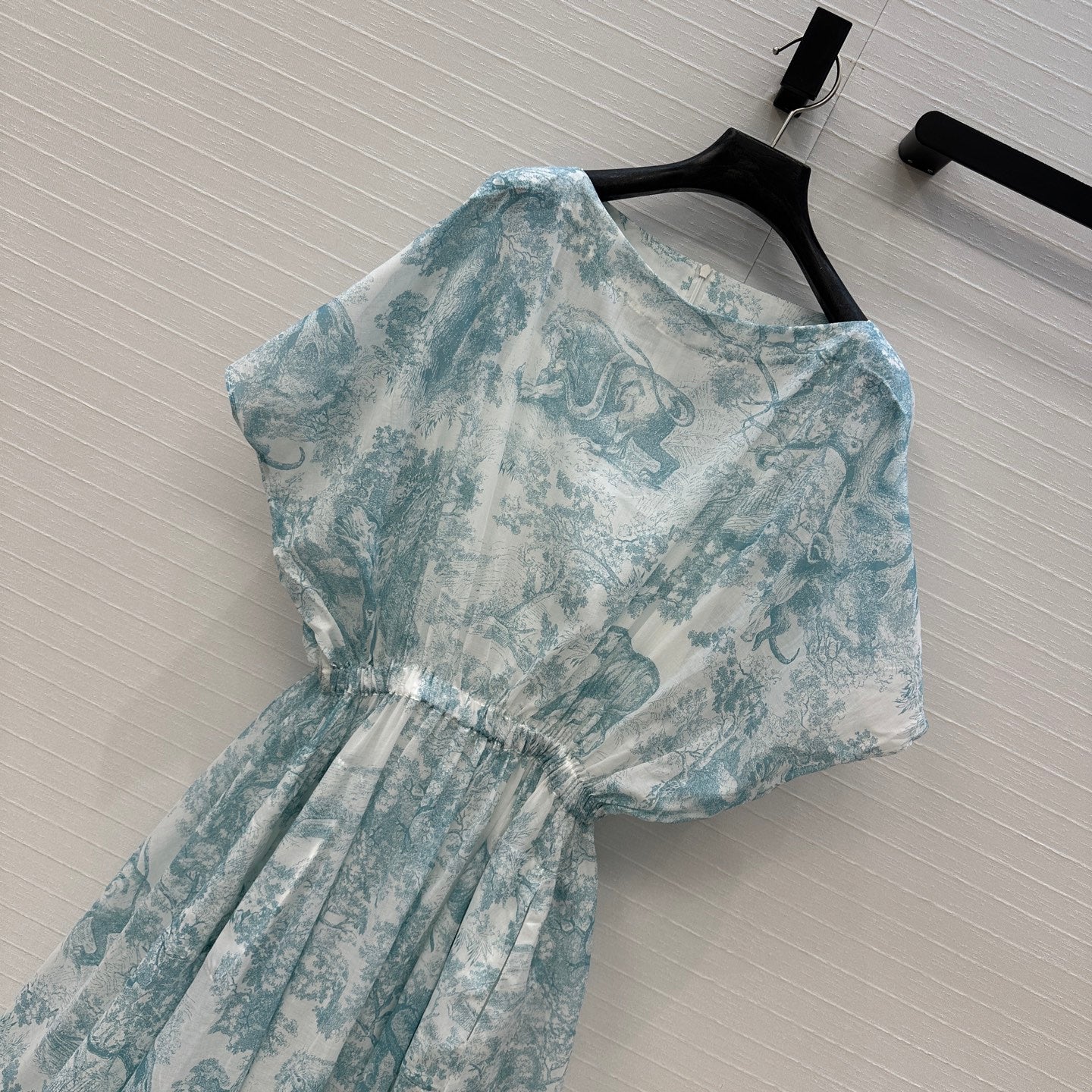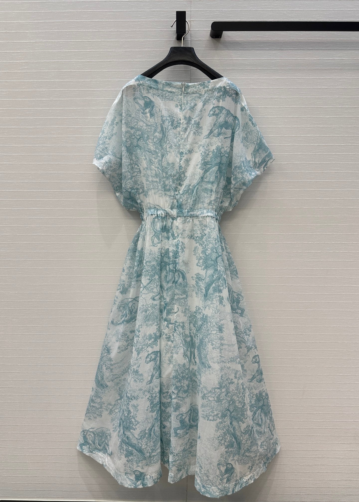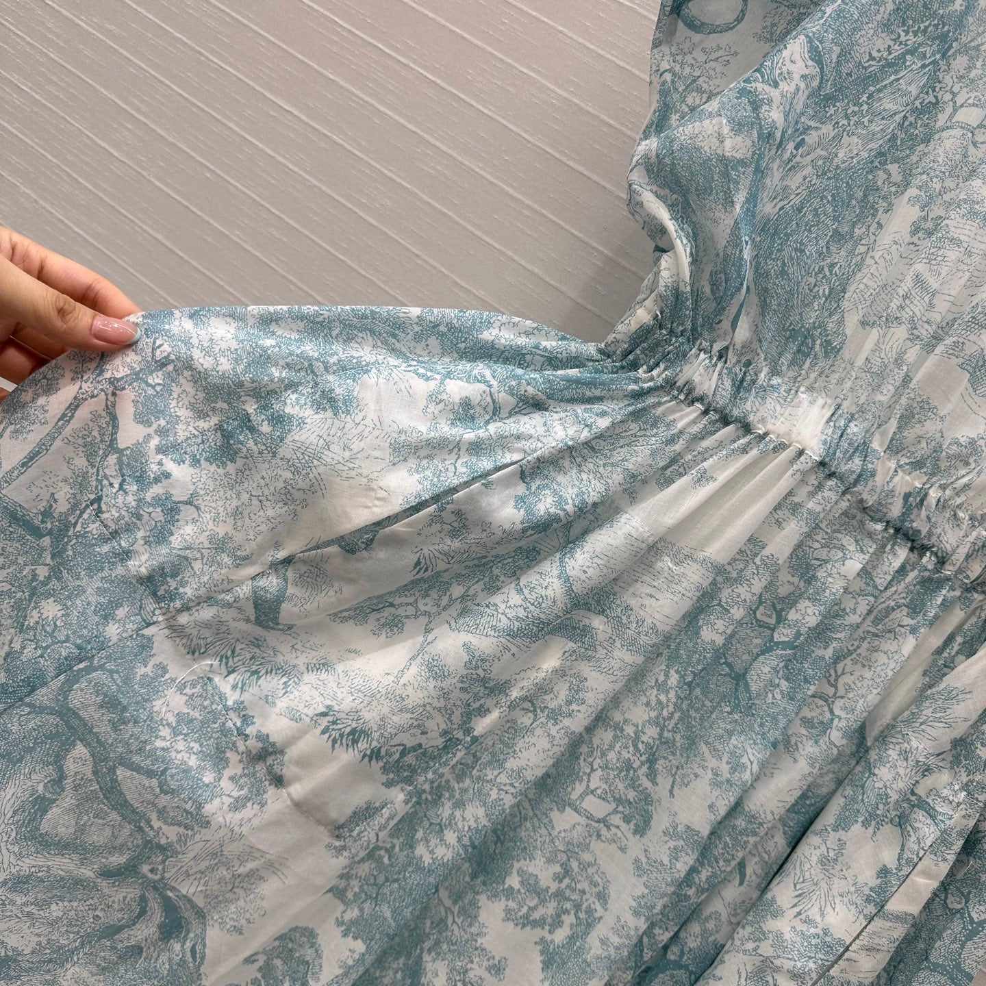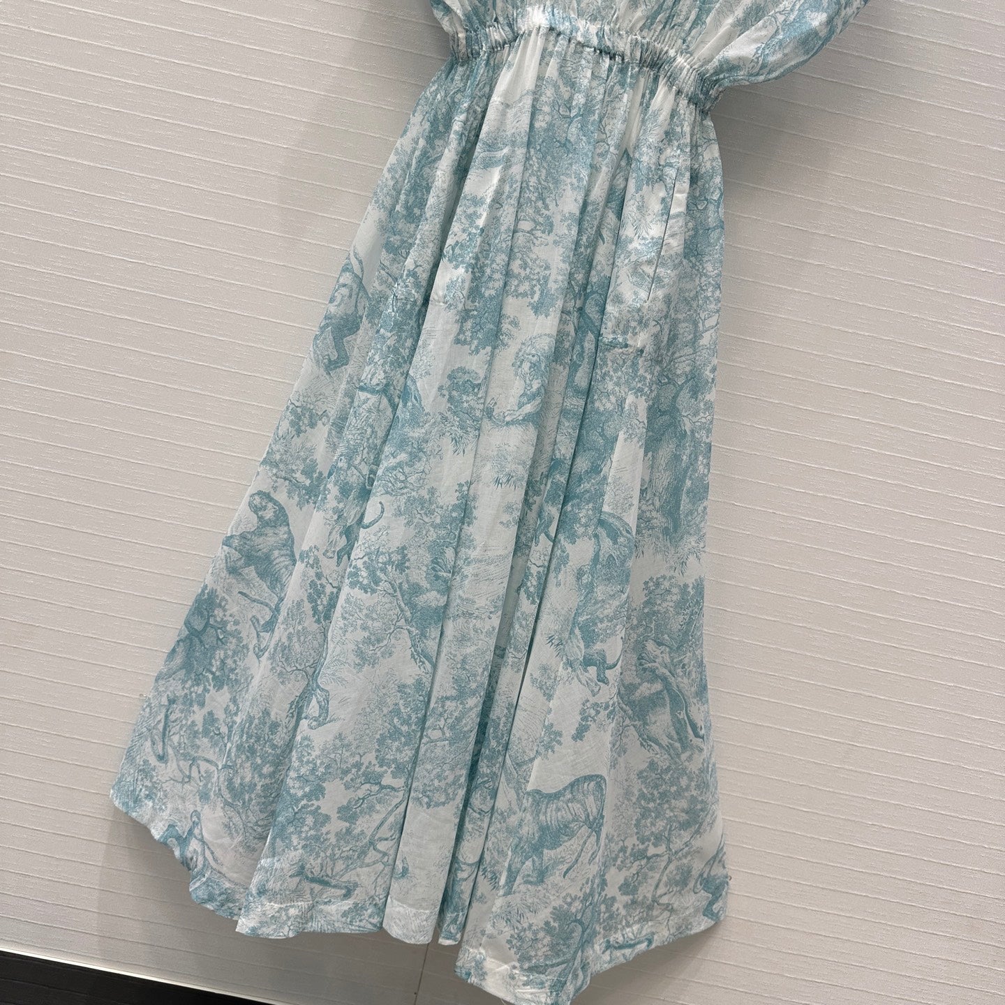 CD 25 Sauvage Jouy Boat Neck Dress Light Blue mix White Cotton