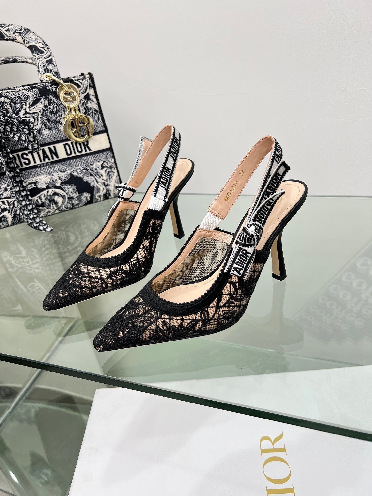 CD 25 Slingback Pump Black Transparent Mesh
