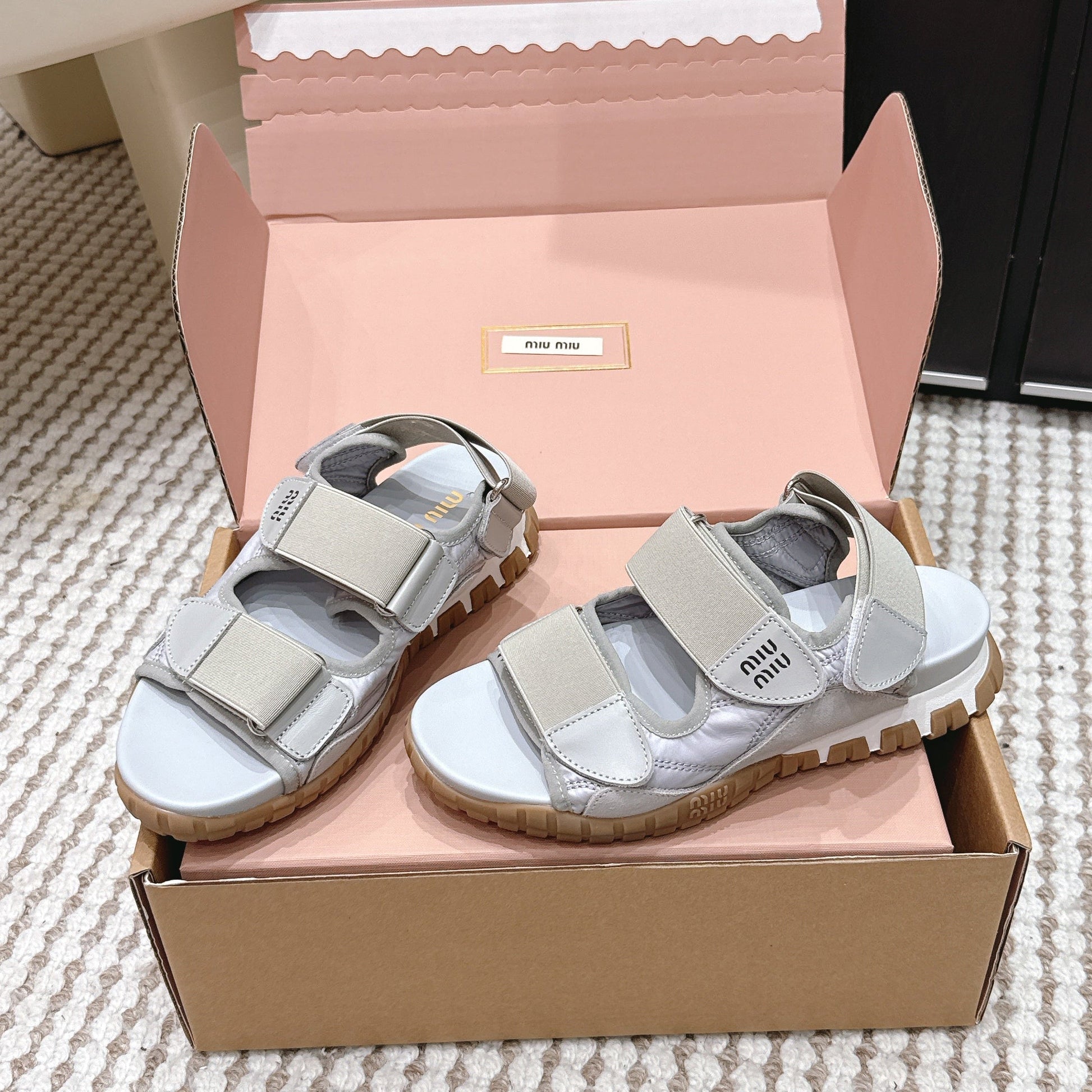 MIU 26 Platform Sandals Light Greige Leather 632332