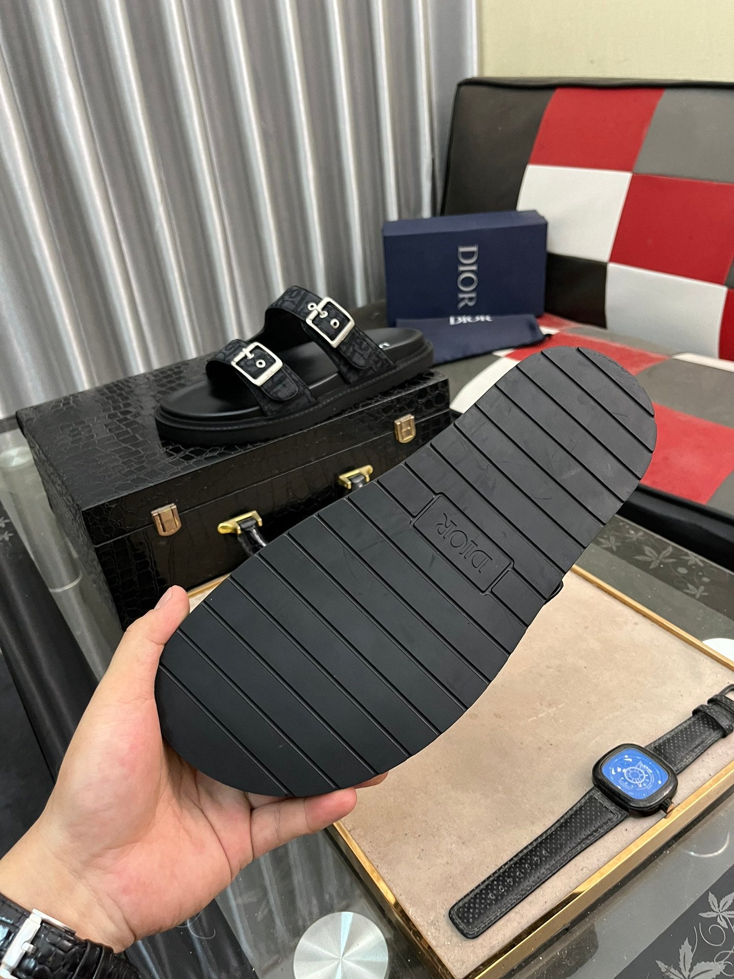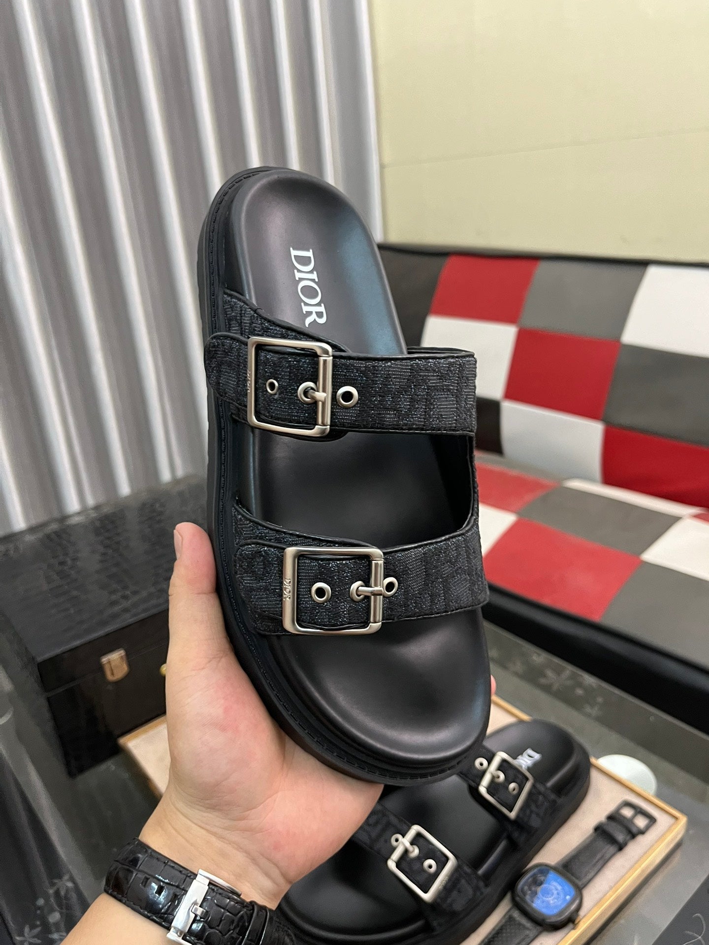 CD AQUA BUCKLE SANDAL BLACK JACQUARD