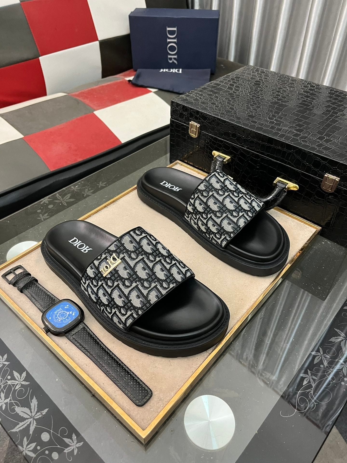 CD AQUA SLIDE SANDAL BLACK AND GRAY JACQUARD