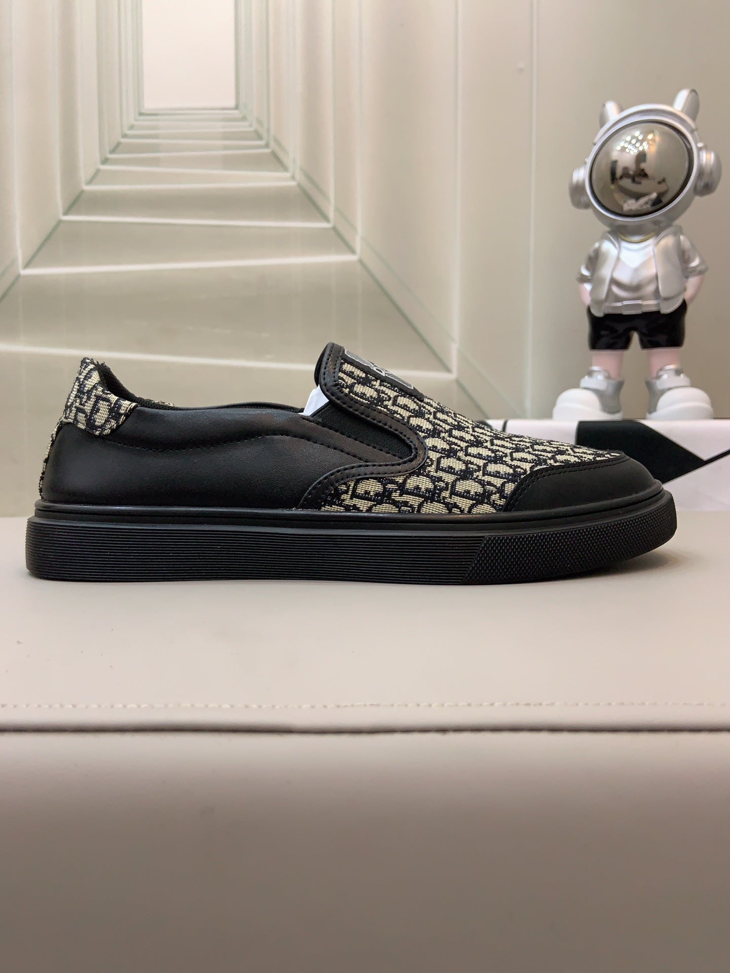 CD B23 SLIP ON BLACK CALFSKIN AND BEIGE FABRIC