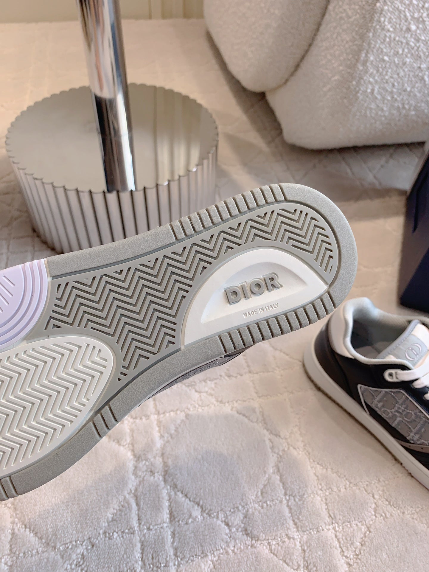 CD B27 Low-Top Sneaker Black Grey Mix White Calfskin And Oblique Jacquard Fabric