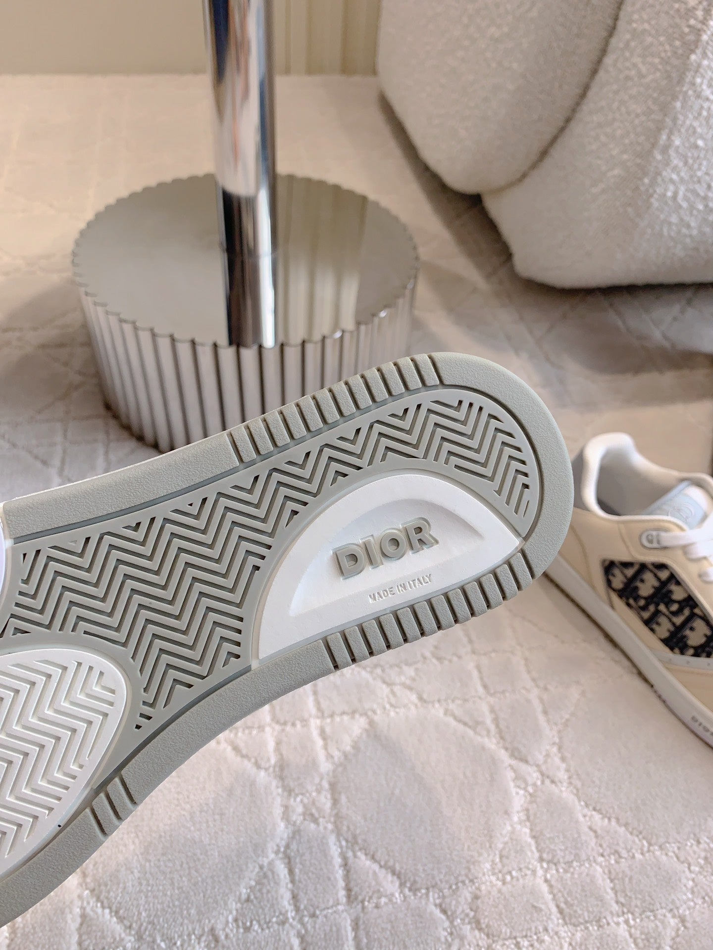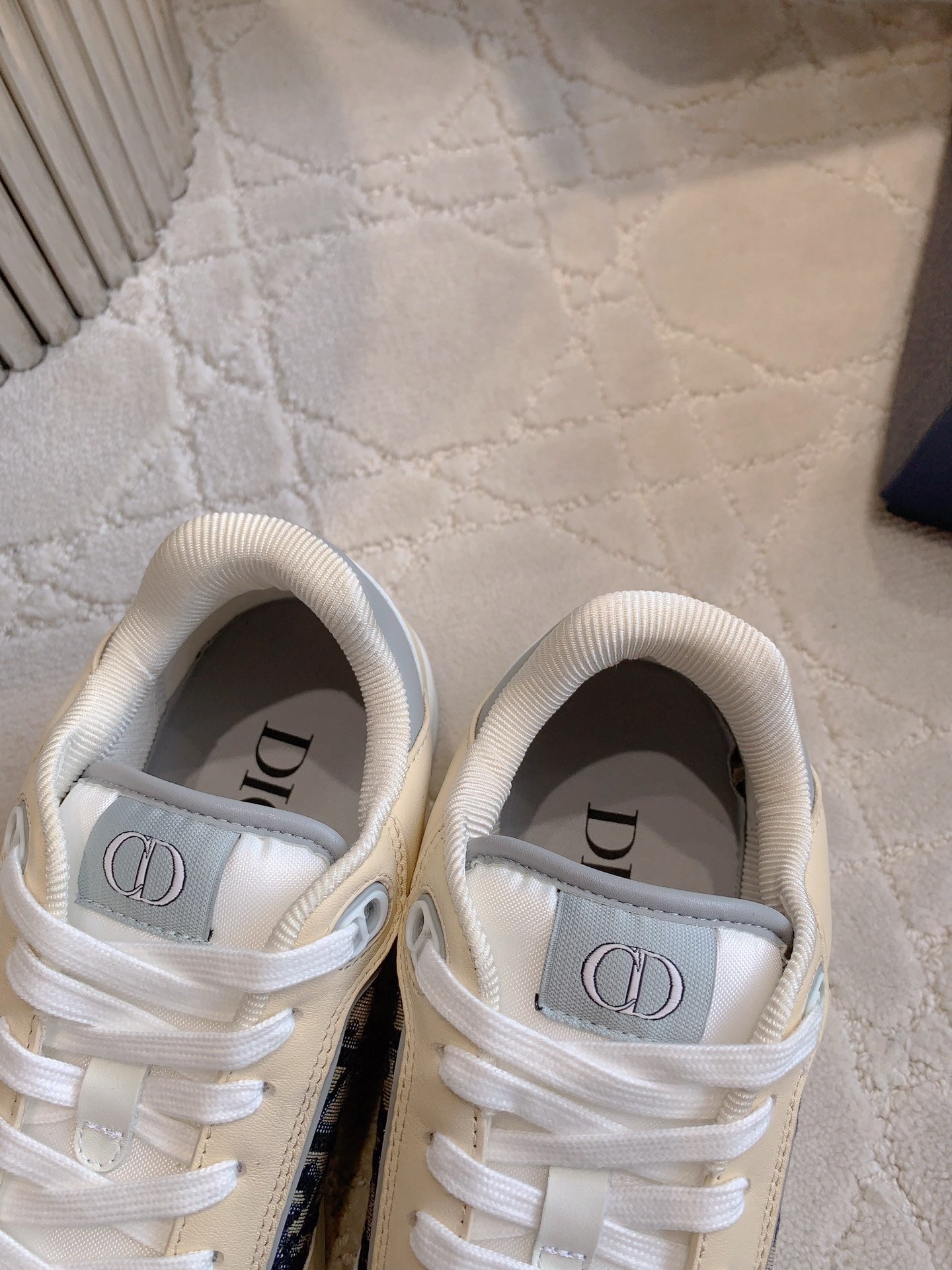CD B27 Low-Top Sneaker White Beige Mix Charcoal Blue Print Calfskin And Oblique Jacquard