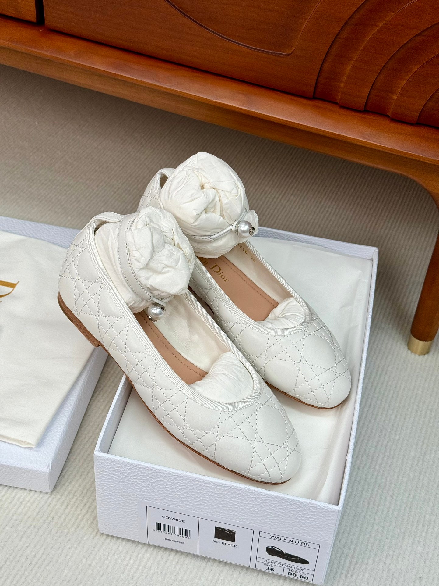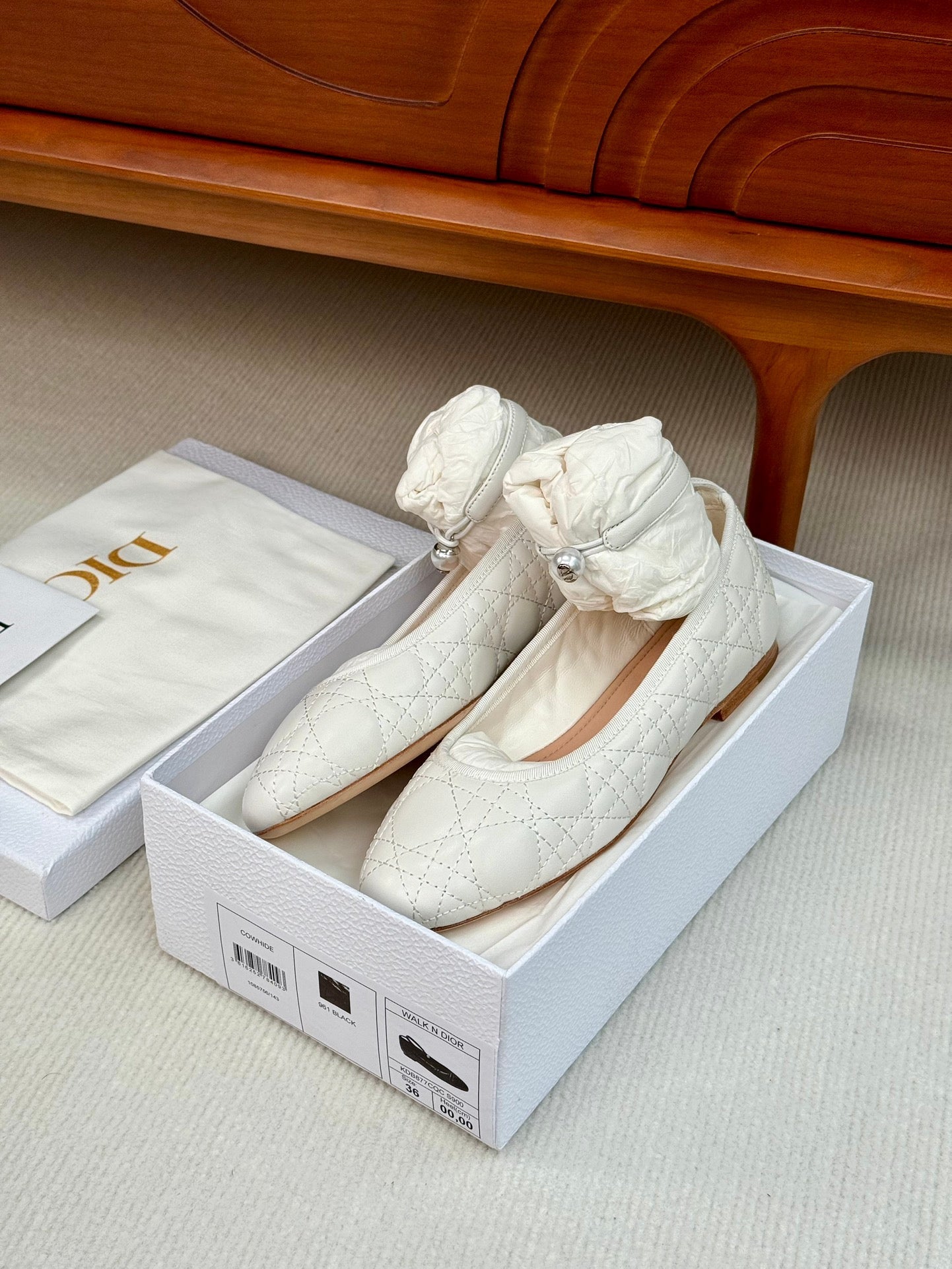 cd ballet flat white lambskin mop