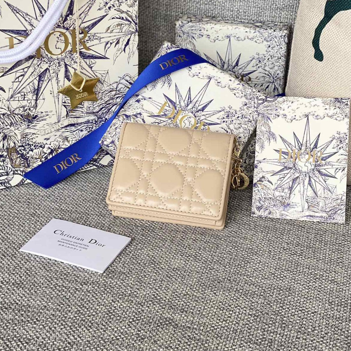 CD Caro 11cm Compact Wallet Beige Calfskin