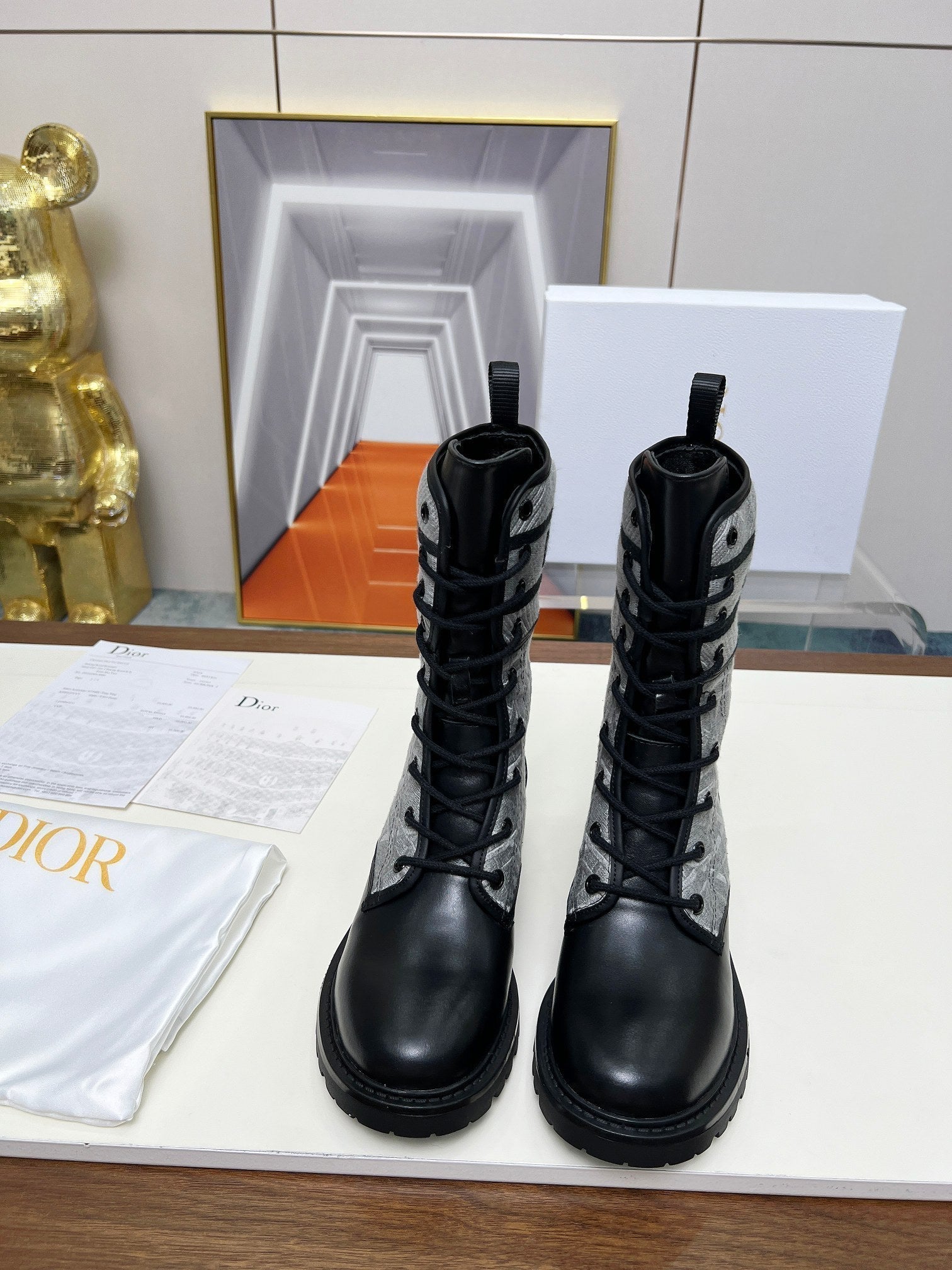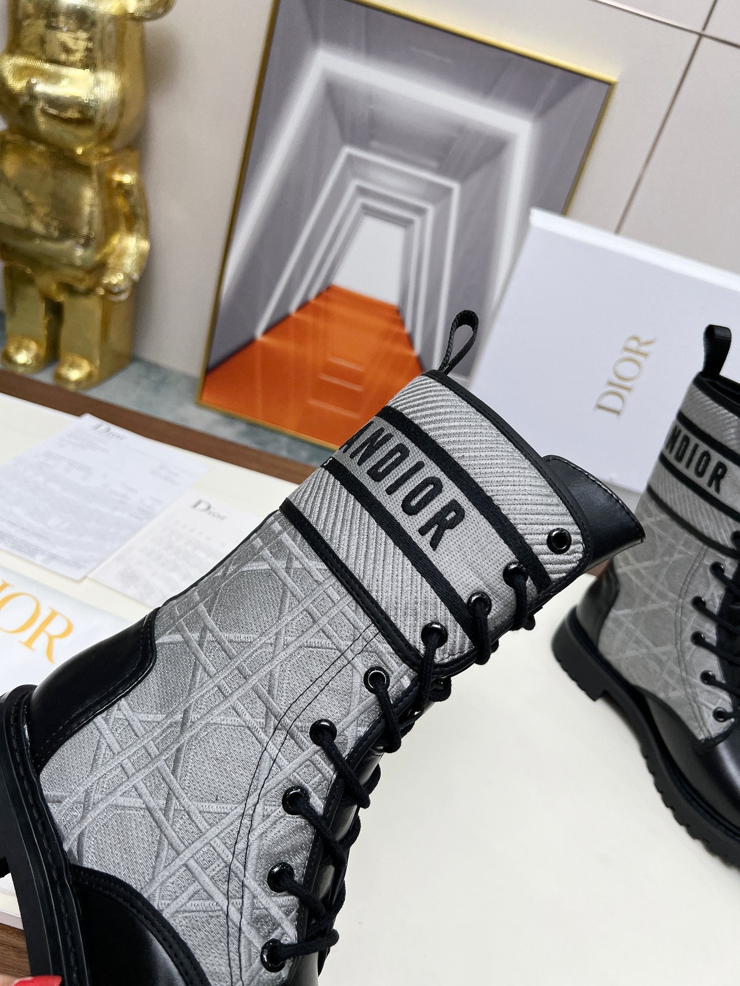 CD D-Major Ankle Boot In Grey Mix Black Denim Fabric And Lambskin 107724