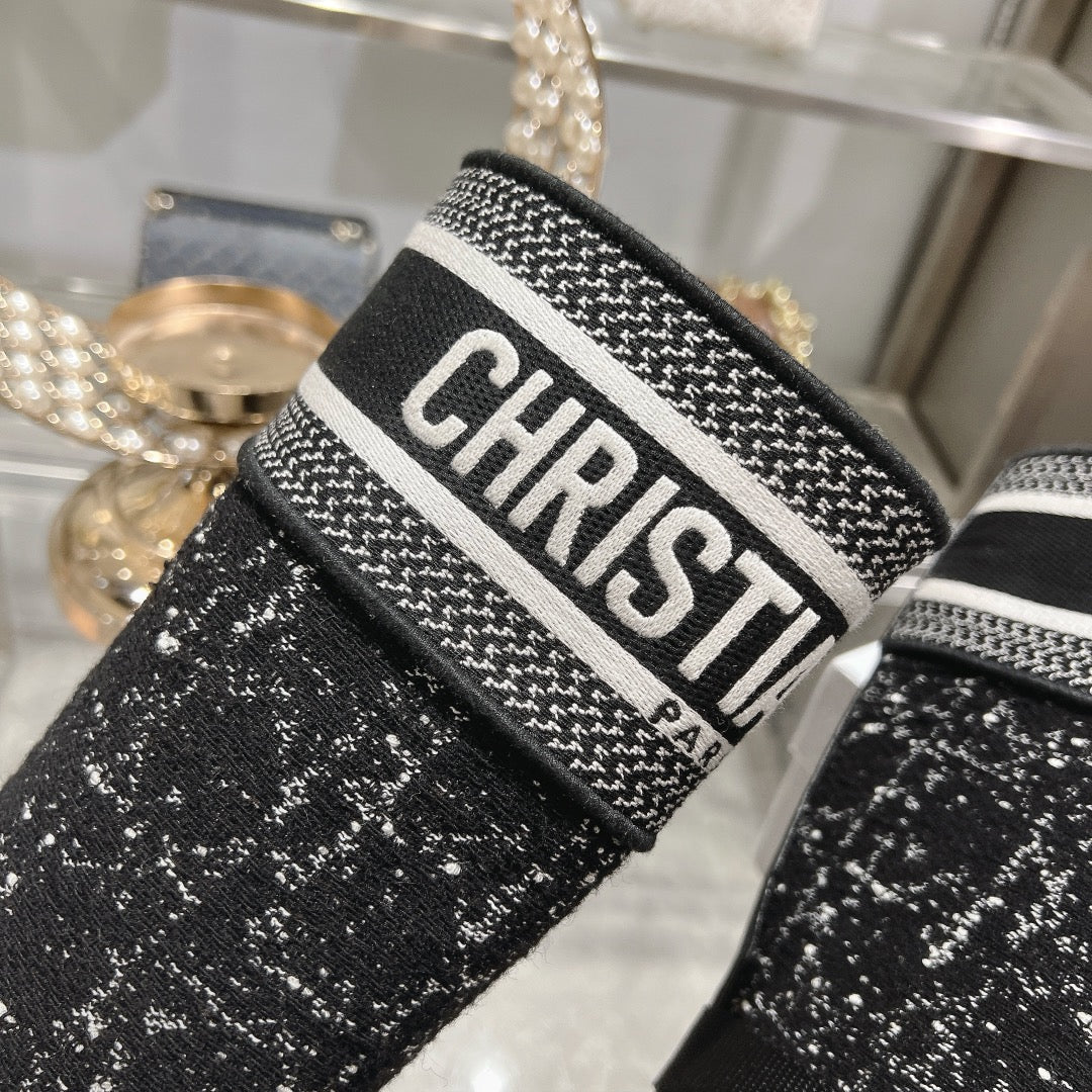 CD D-Major Boot Black Mix White Calfskin And Tweed Fabric