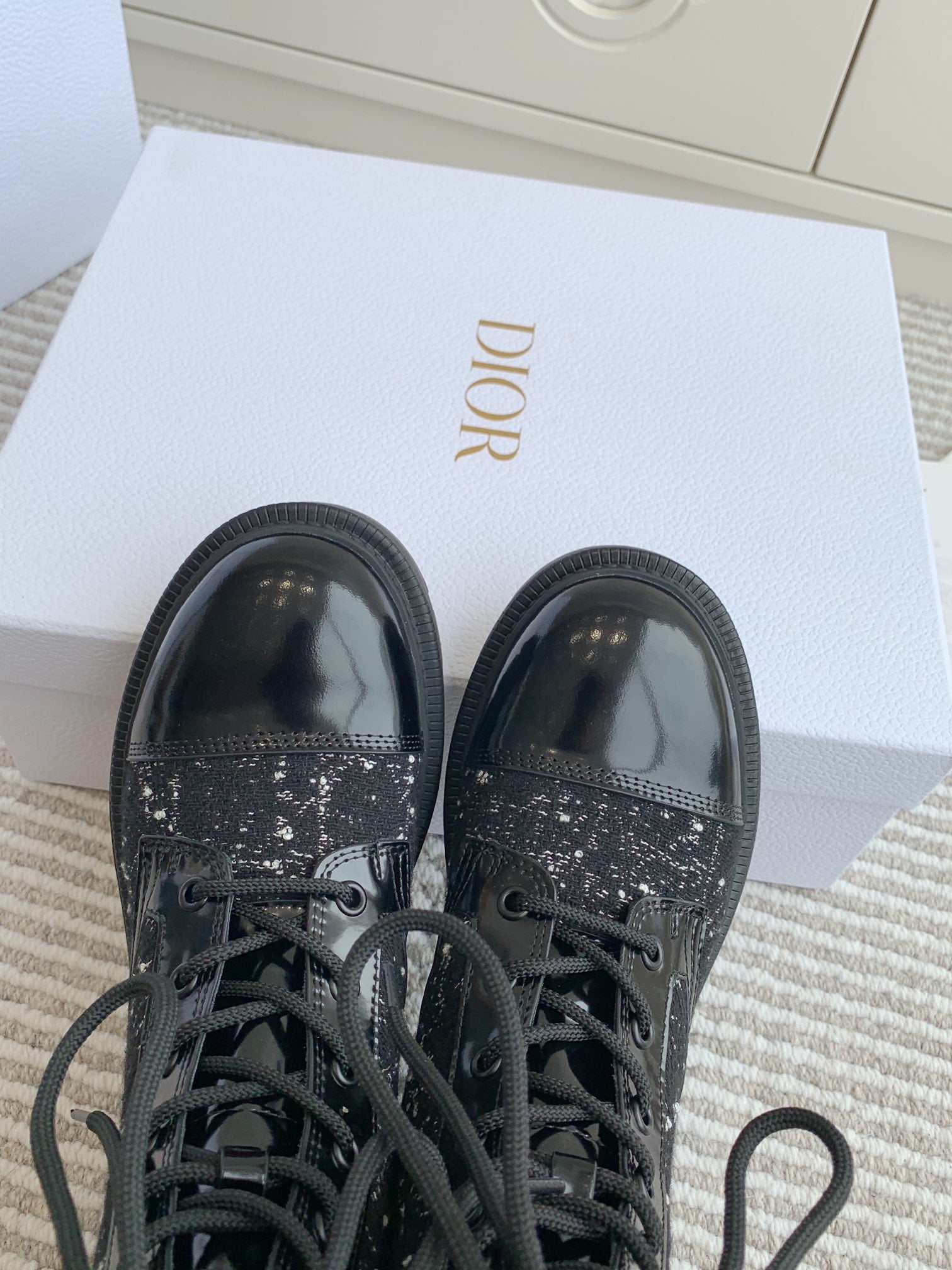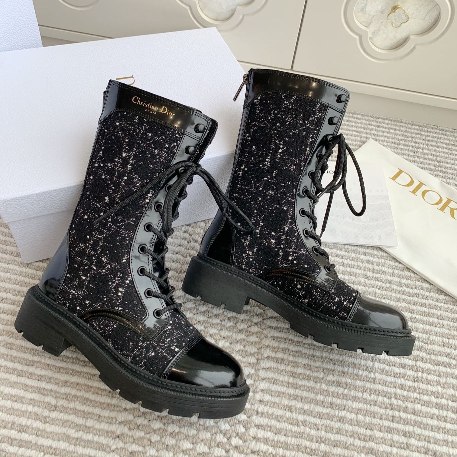CD D-Unit Ankle Boot In Black Tweed Fabric And Glossy Cowhide 105086