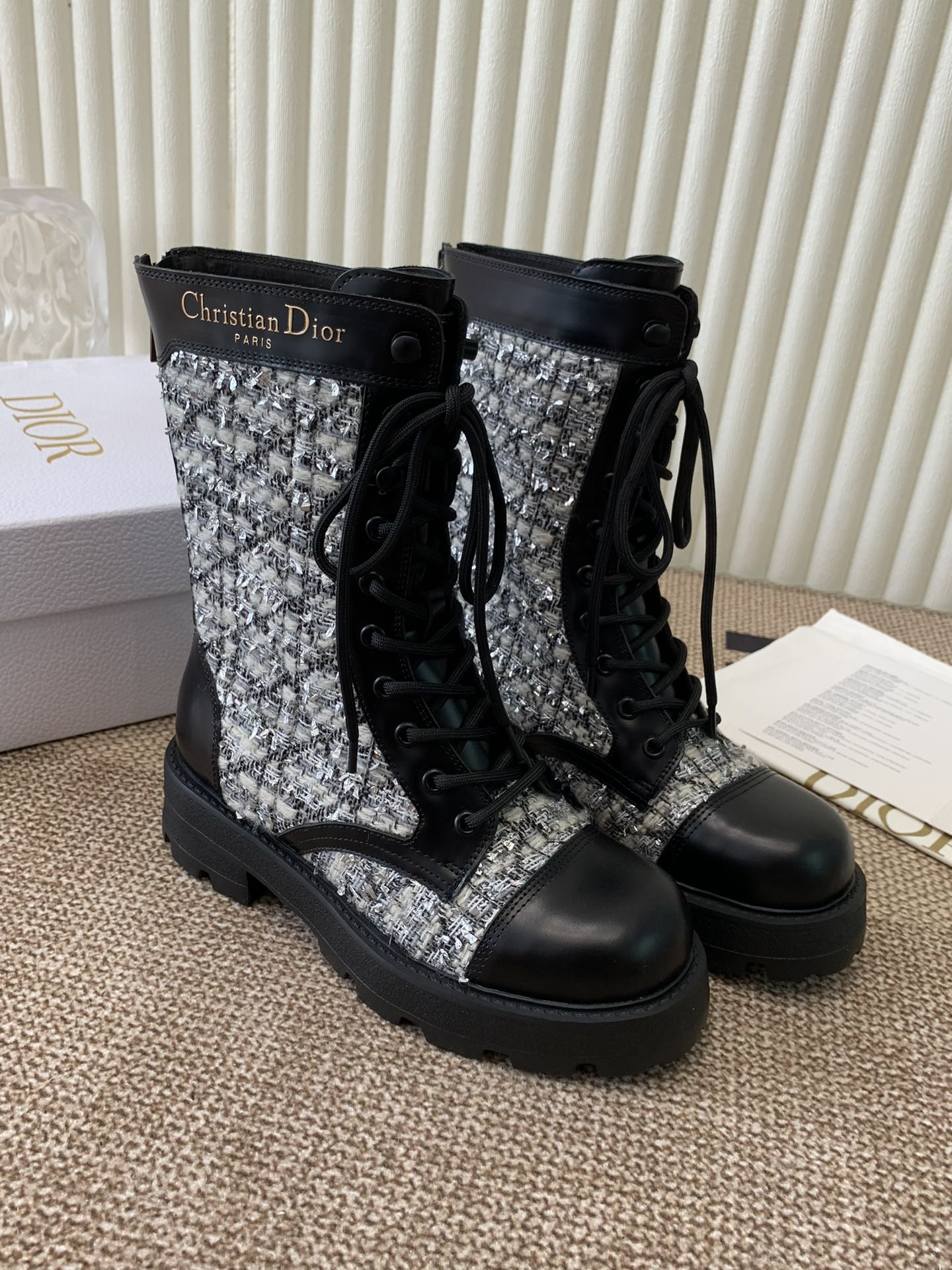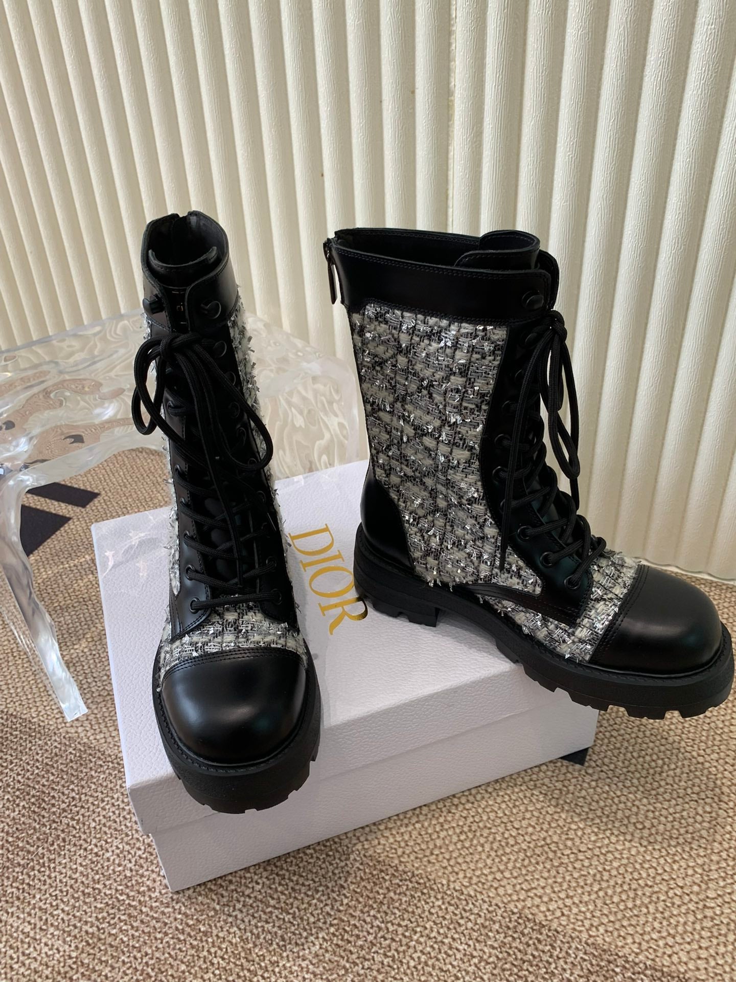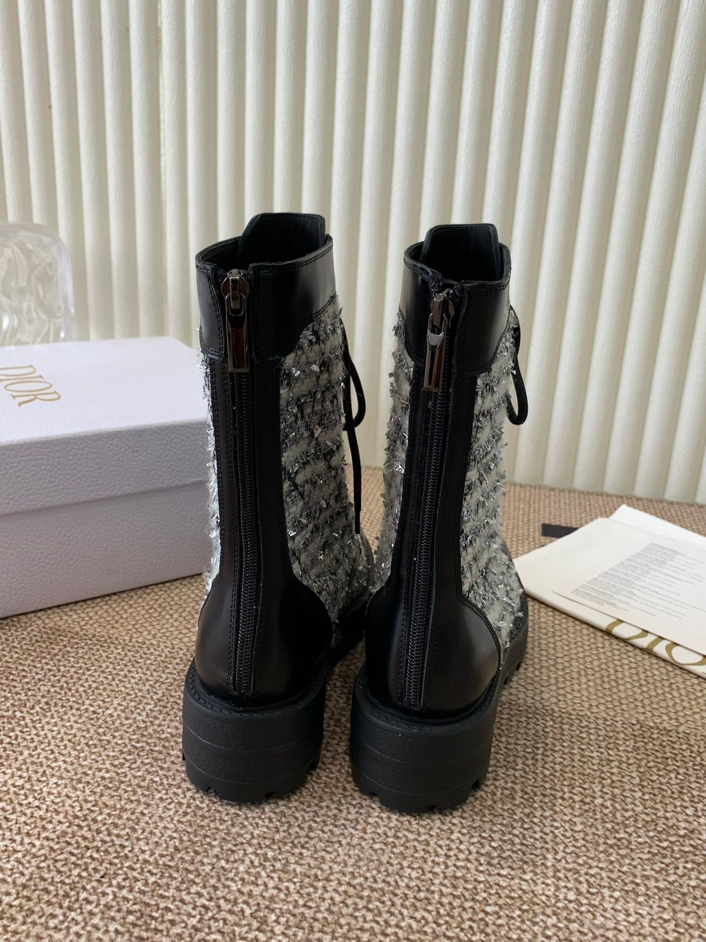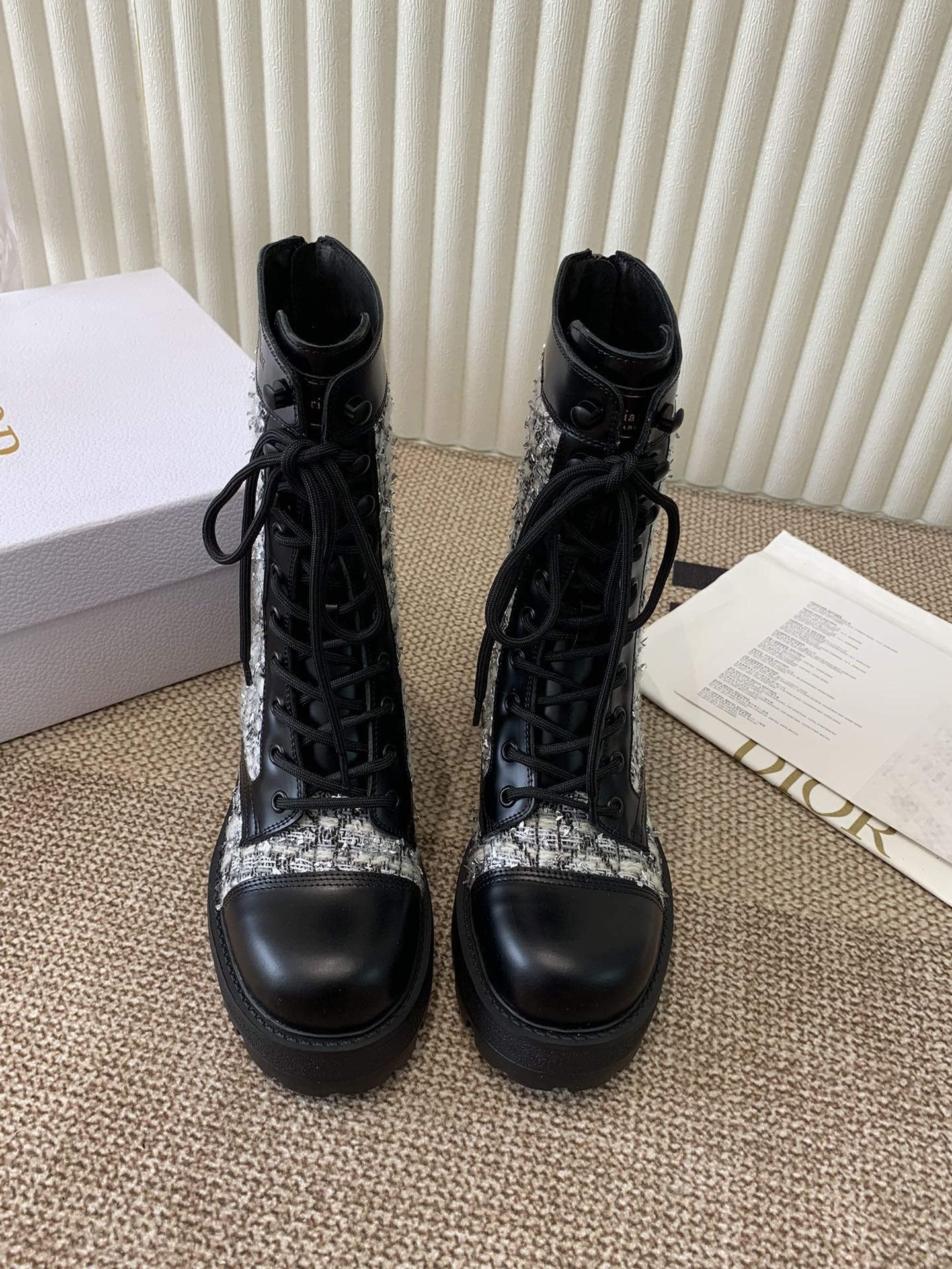 CD D-Unit Ankle Boot In White Mix Black Tweed Fabric And Cowhide 113476