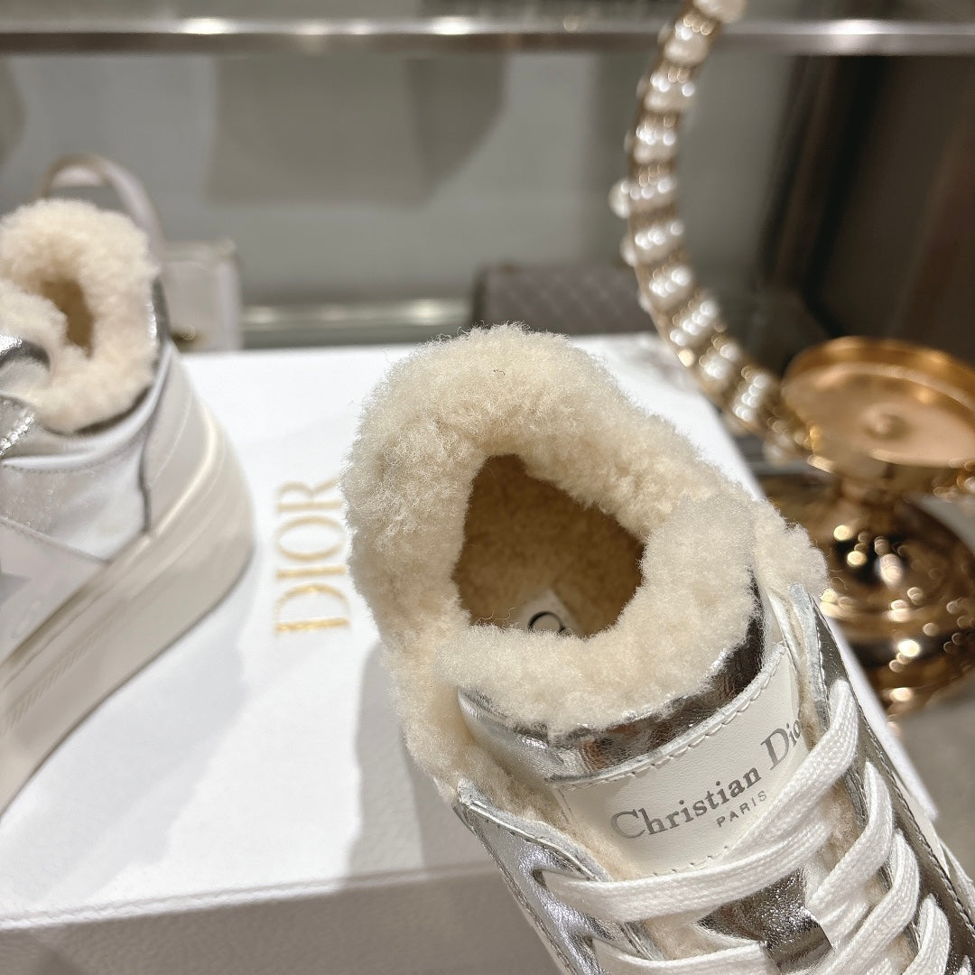 CD Dior Star Platform Sneaker In Glossy Silver Cowhide 996418