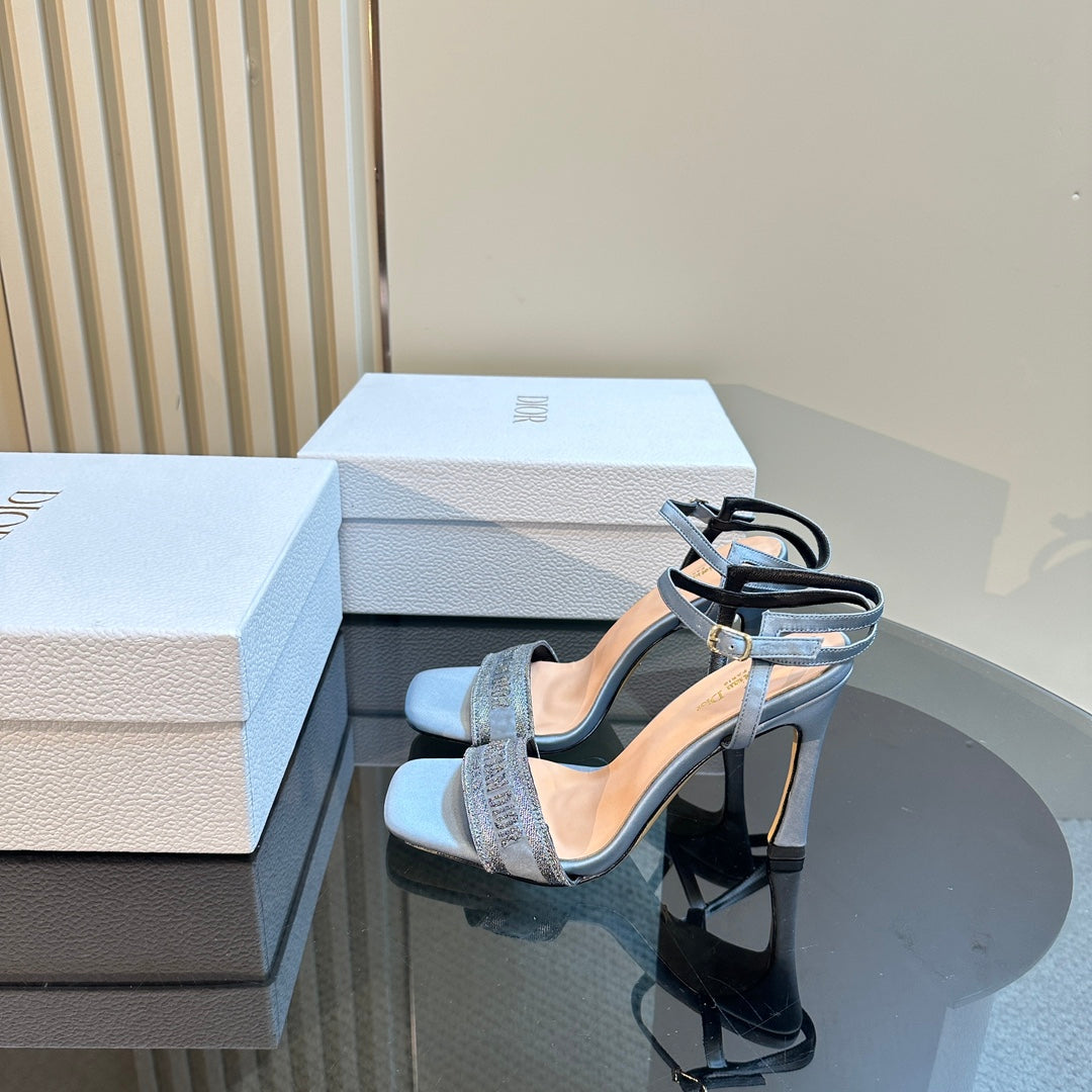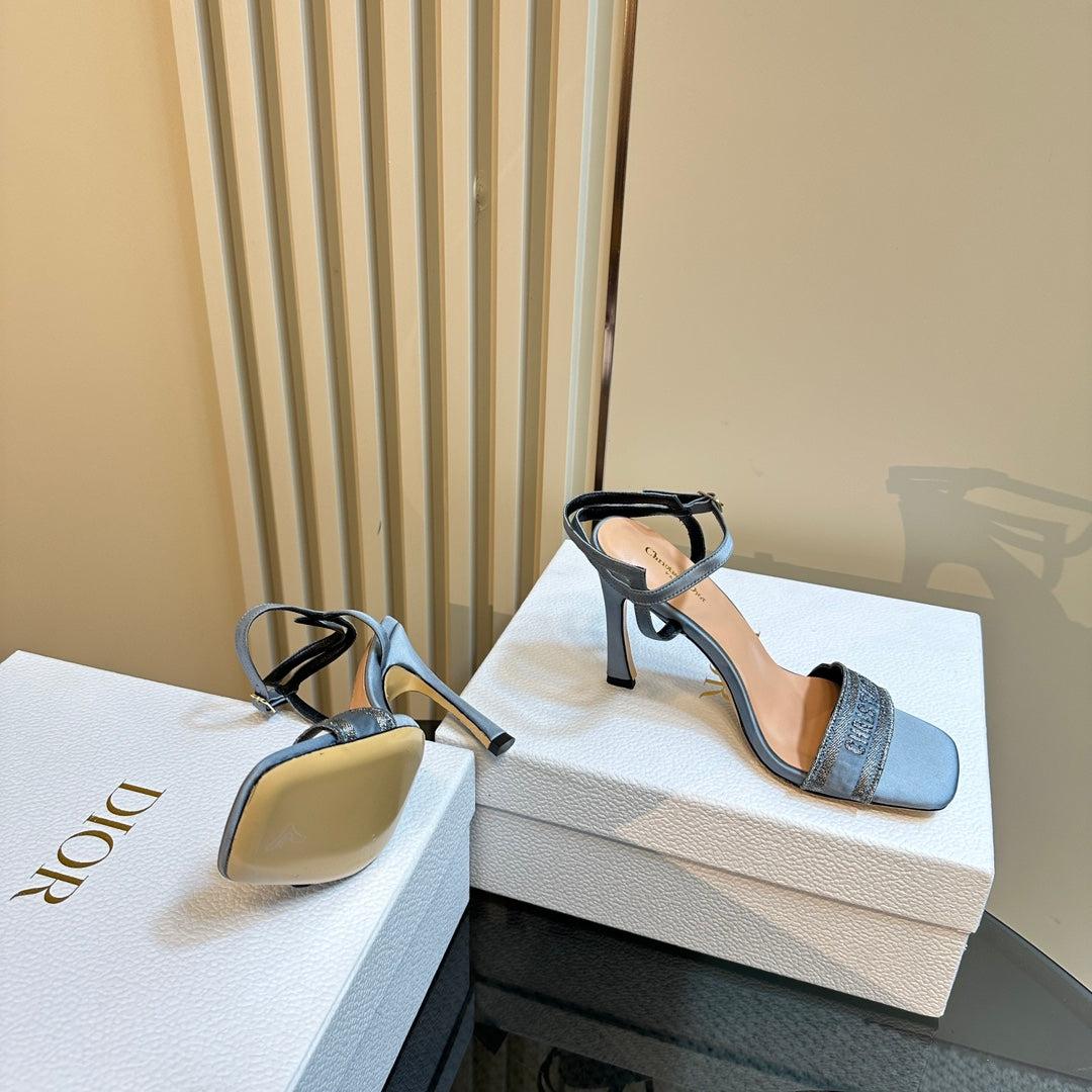 CD Dway Heeled Sandal 105mm Blue Silk And Lambskin
