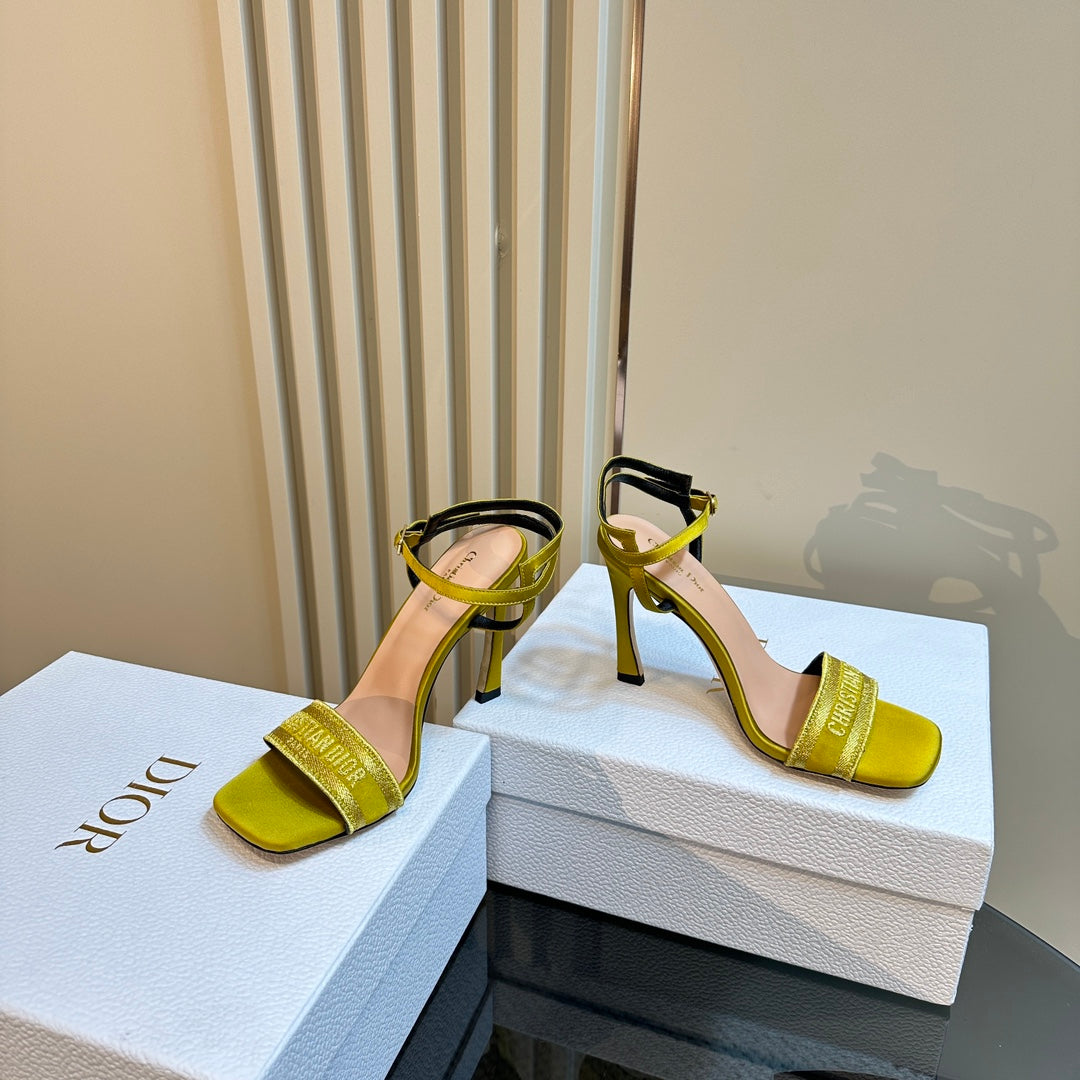 CD Dway Heeled Sandal 105mm Yellow Silk And Lambskin