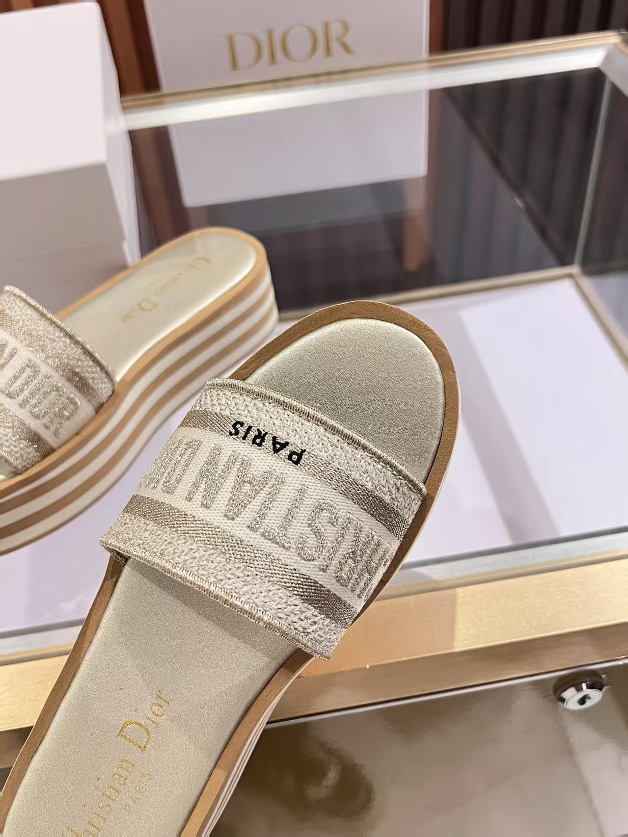 CD Dway Platform Slide Beige Brown Fabric with Lambskin 242442
