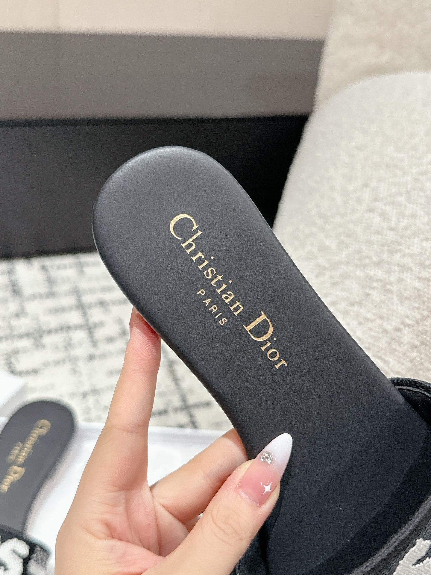 CD Dway Slide Black Mix White Embroidered Cotton