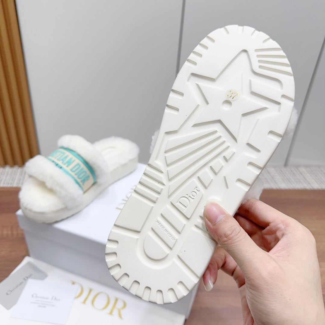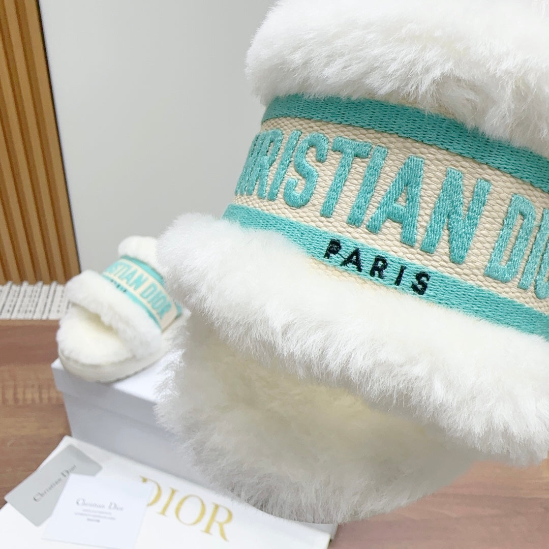 CD Dway Slide White Jade Green Fleece Lining And Canvas Fabric
