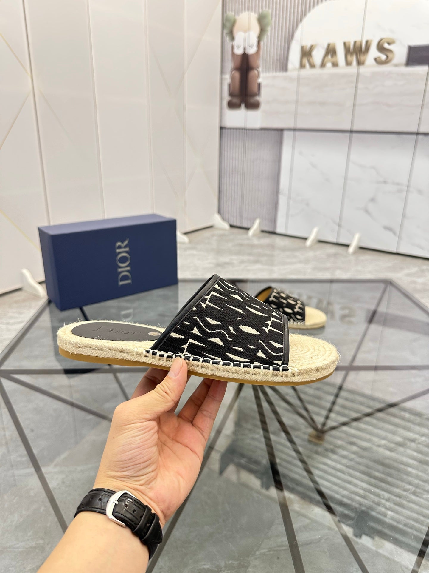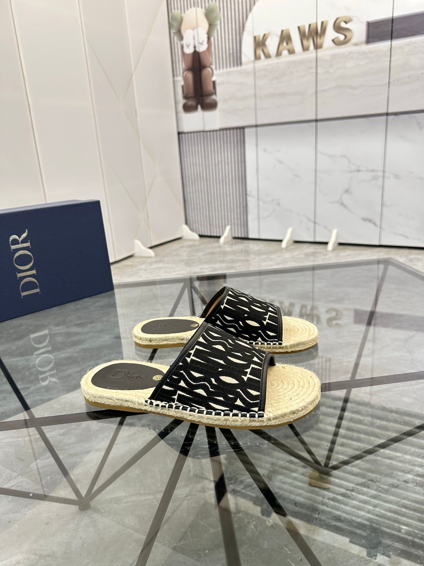 CD Espadrille Slide Navy Black Printed Fabric 639442