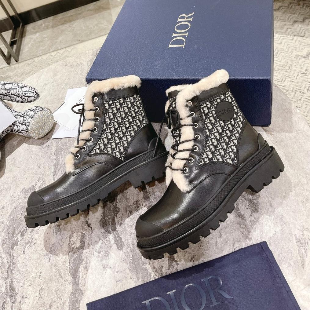 CD Explorer Ankle Boot 50mm Black White Fleece Lining Oblique Jacquard Fabric And Cowhide