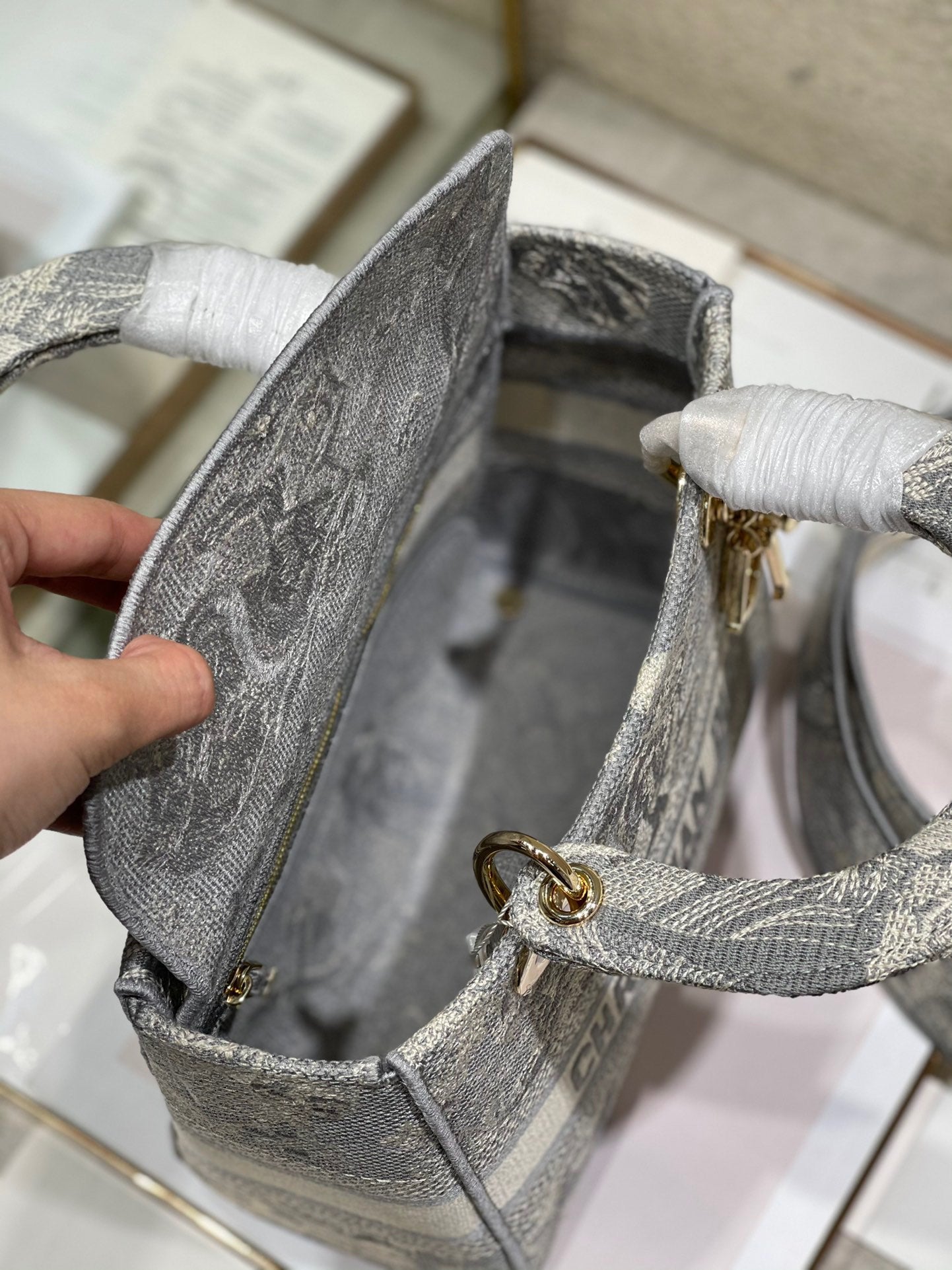CD Gray Tiger 24 Lady Dior Bag Canvas 336660
