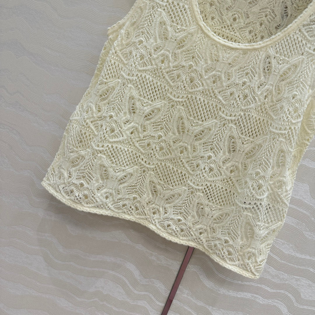 CD Hollow Vest Light Cream Cotton