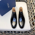 CD HOMME LACE-UP ANKLE BOOT GLOSSY BLACK CALFSKIN
