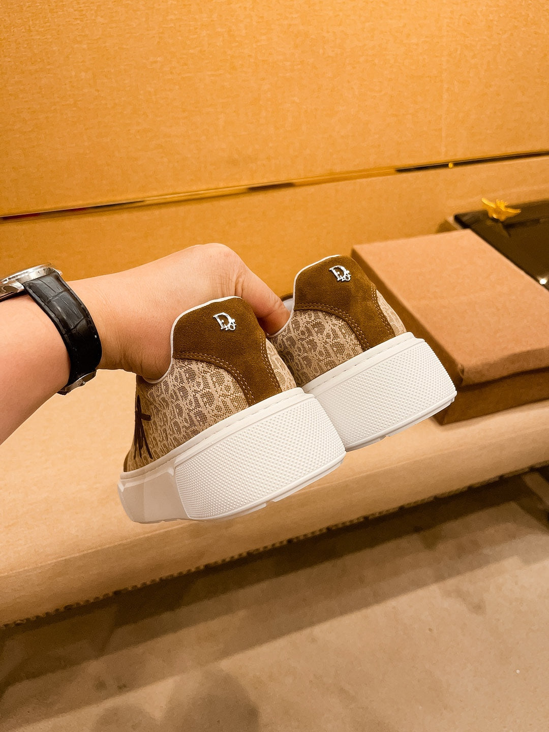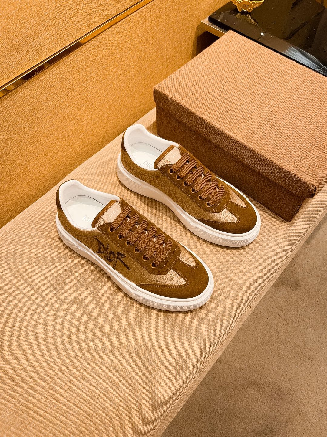 CD HOMME THICK-SOLE SNEAKERS BROWN JACQUARD