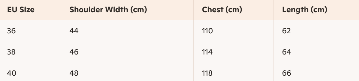 - Size : 36, 38, 40