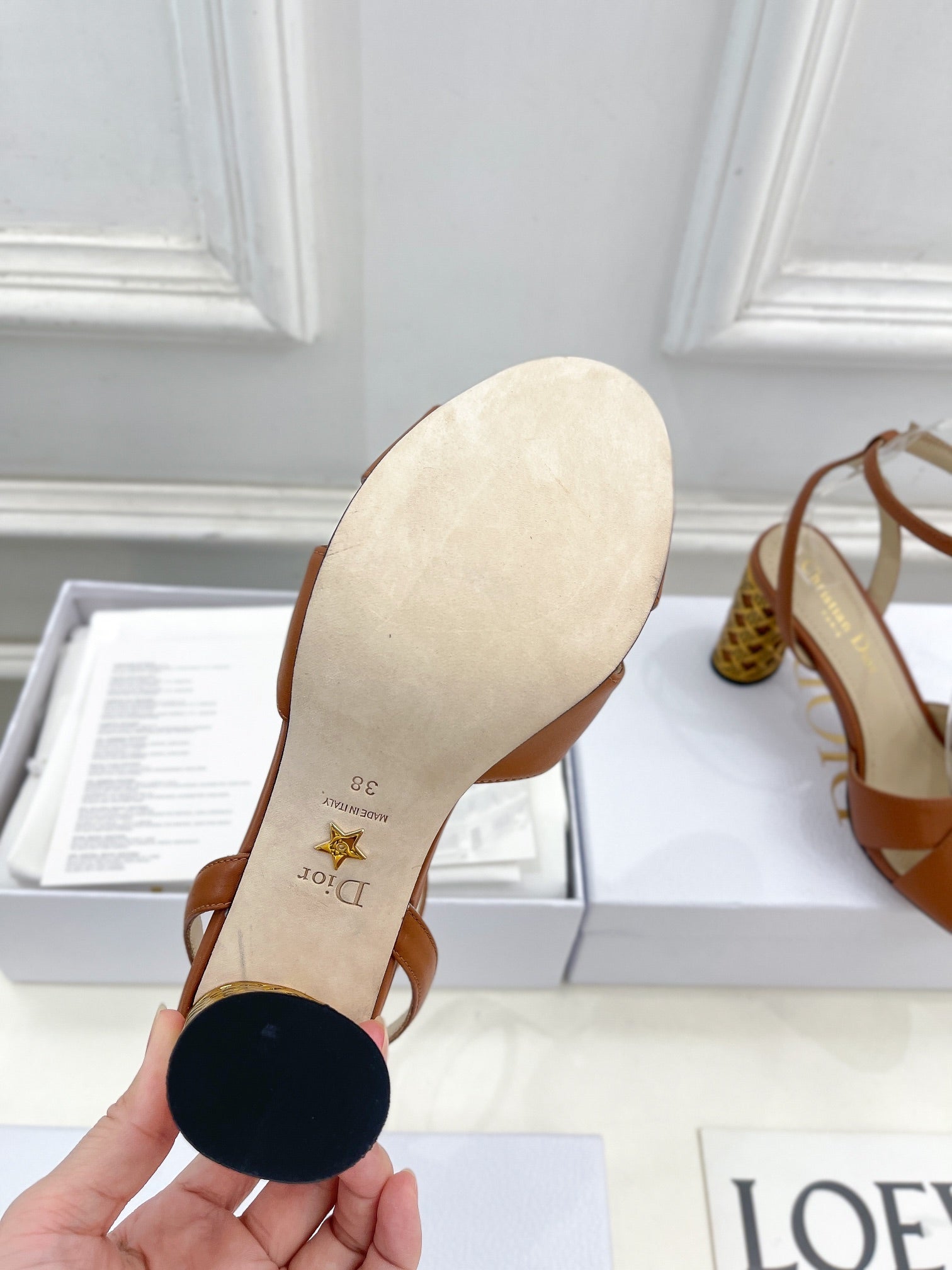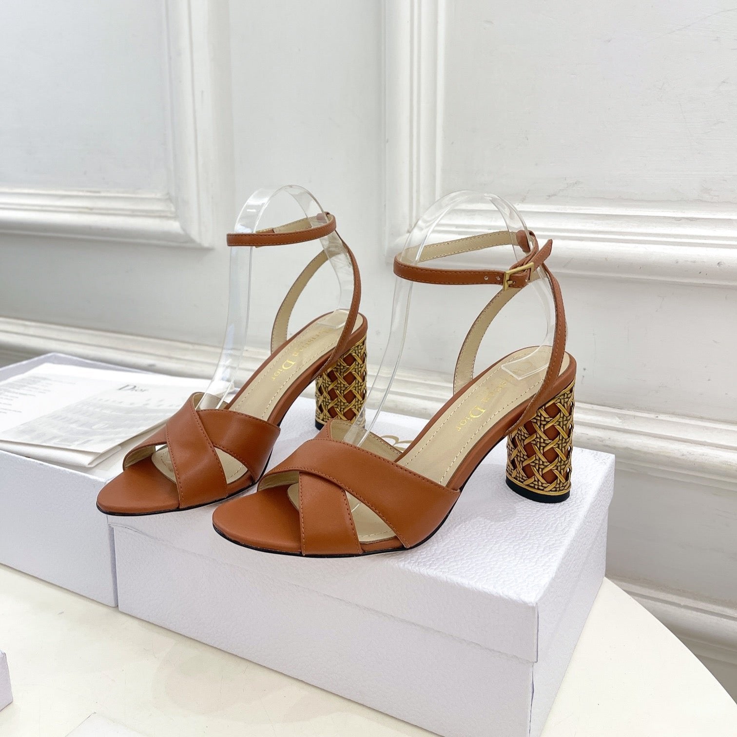 CD Icon Heeled Sandal 80mm Brown Calfskin