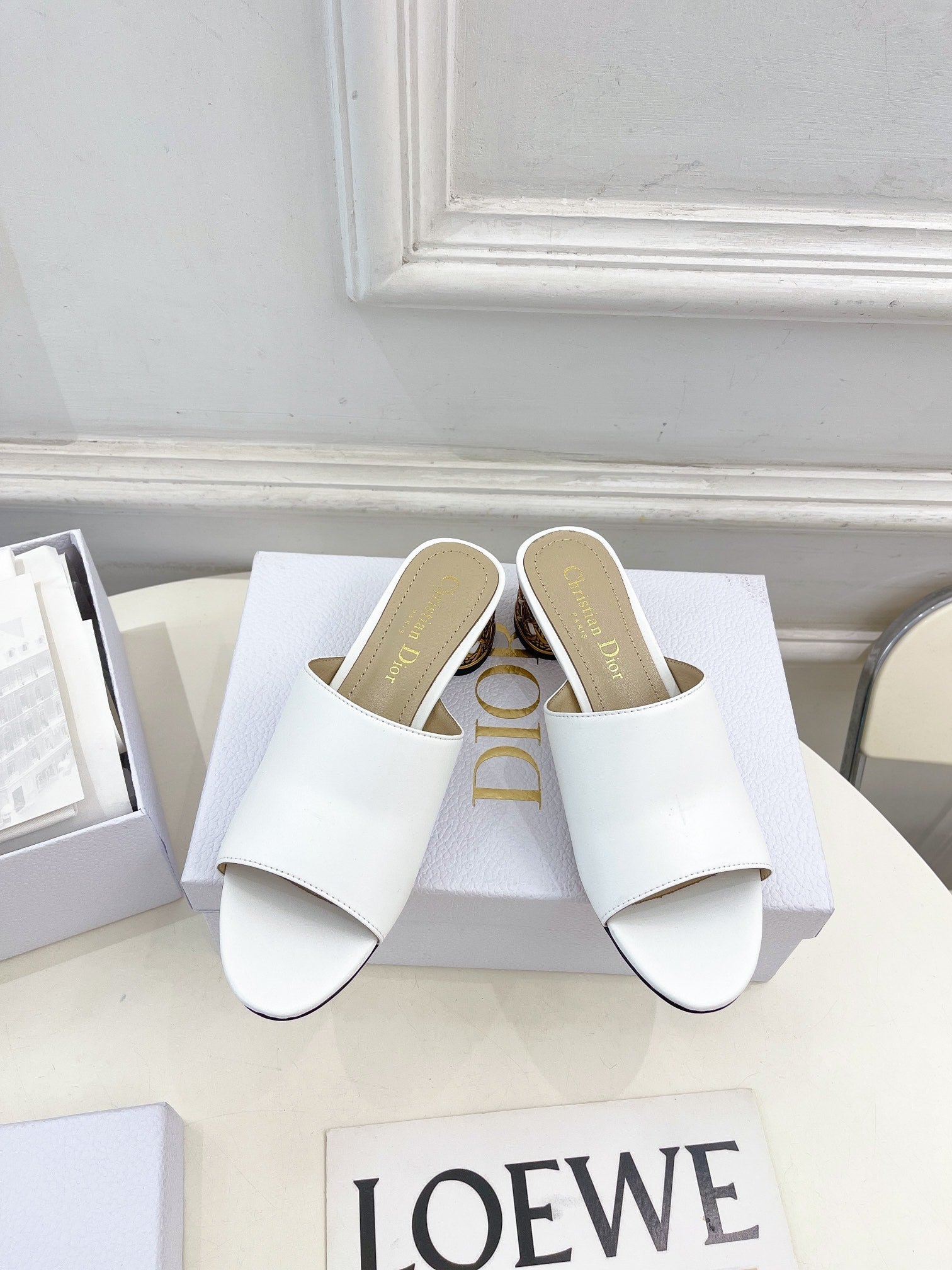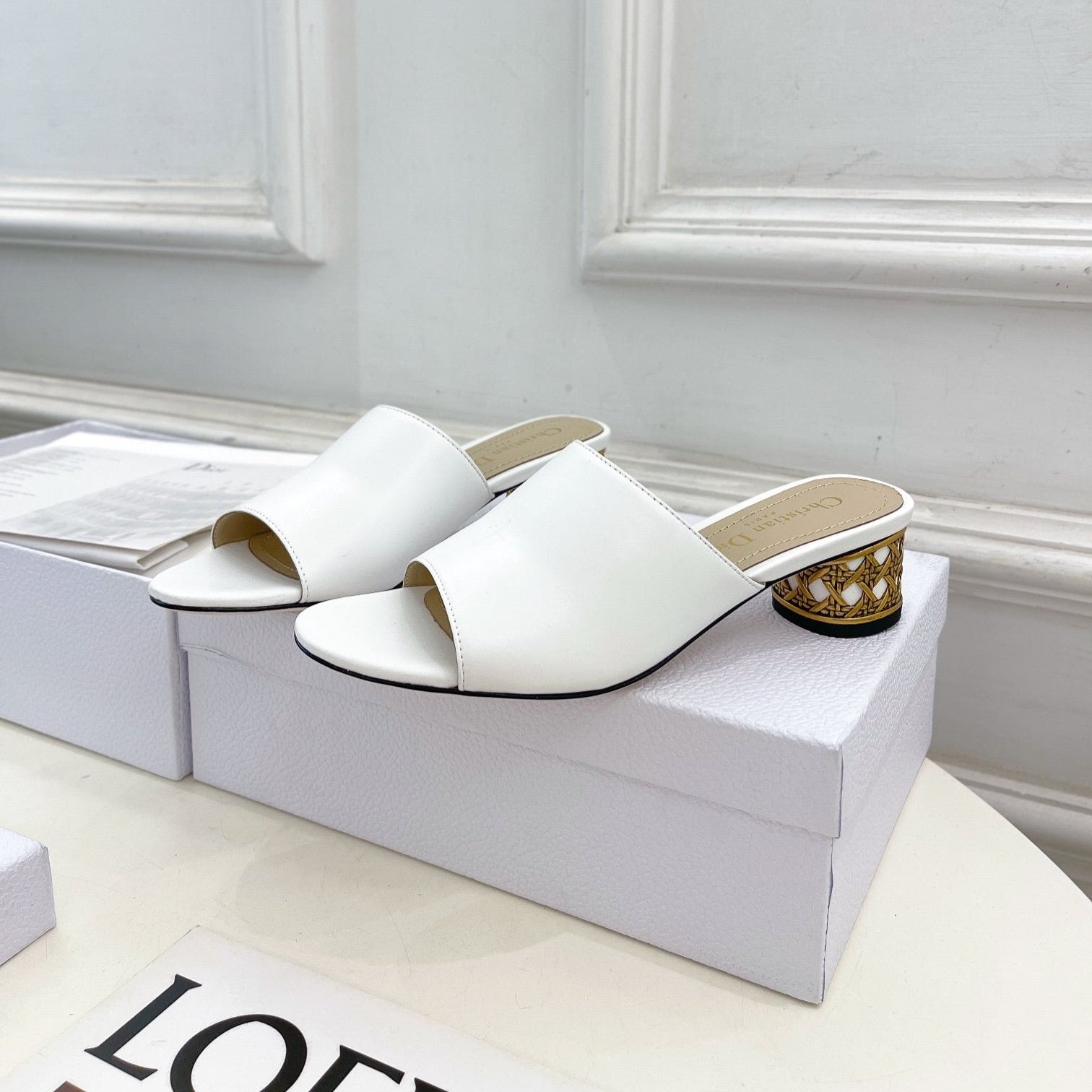 CD Icon Heeled Slide 40mm White Calfskin