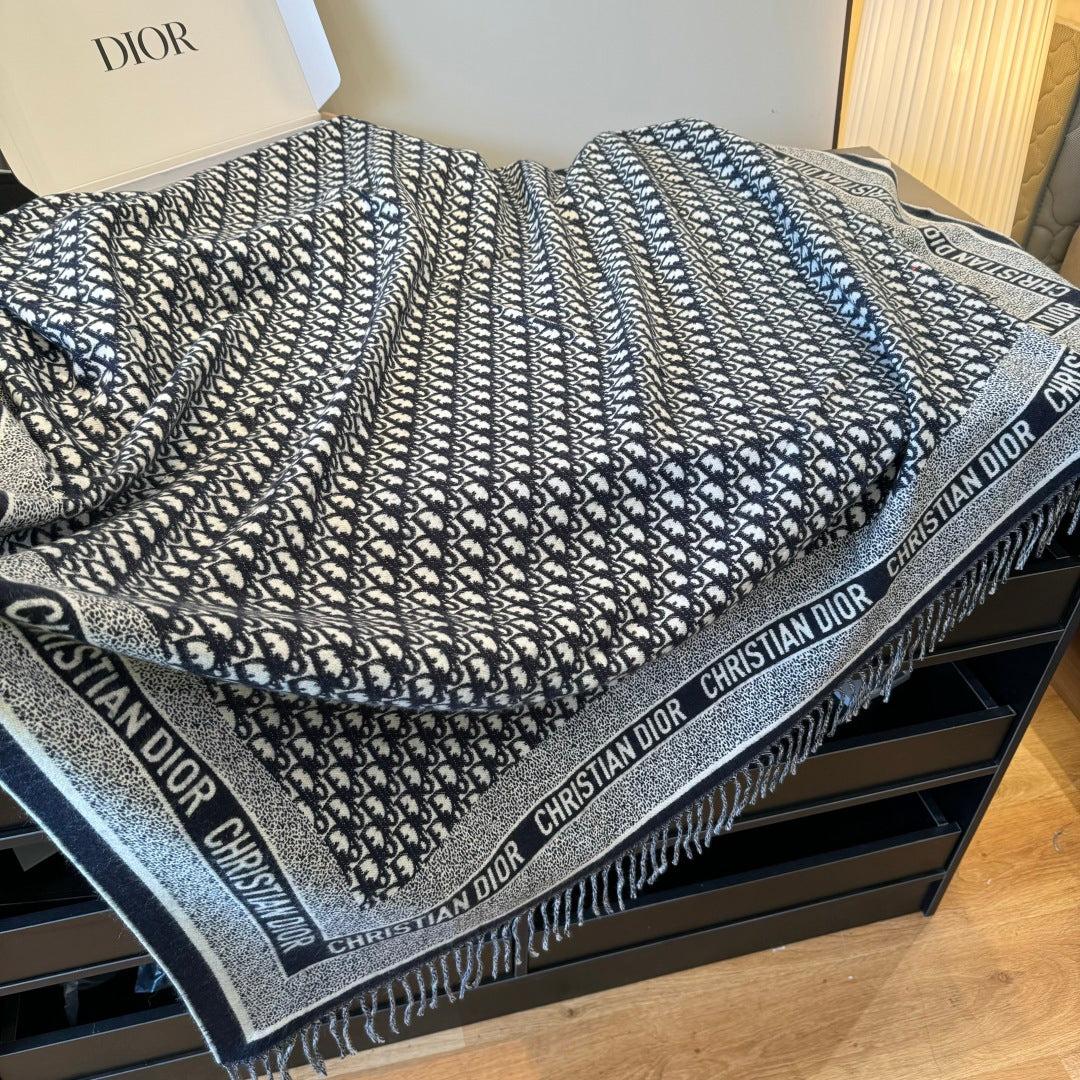 CD Jacquard Logo Scarf 140CM Dark Blue Wool Cashmere. 293334