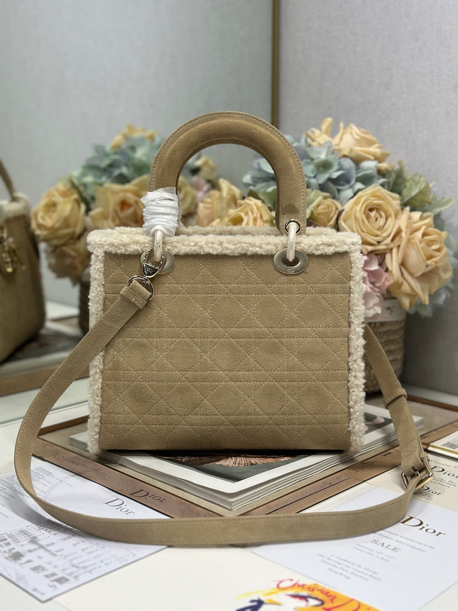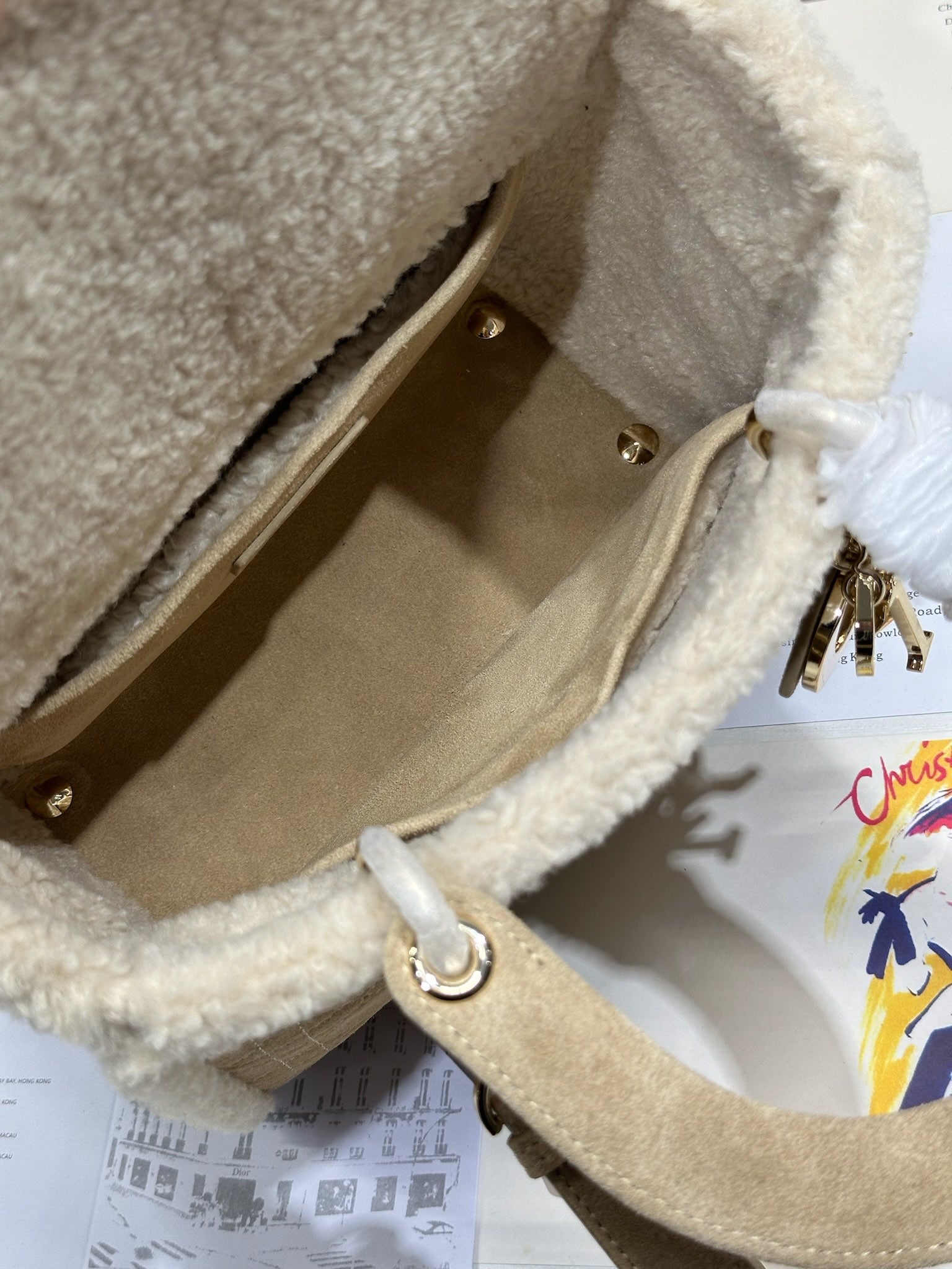 CD Lady 24 Camel Cowhide And Fur Gold Hardware