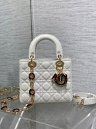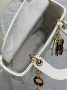 CD Lady Bag 20cm White Lambskin Brown Charm