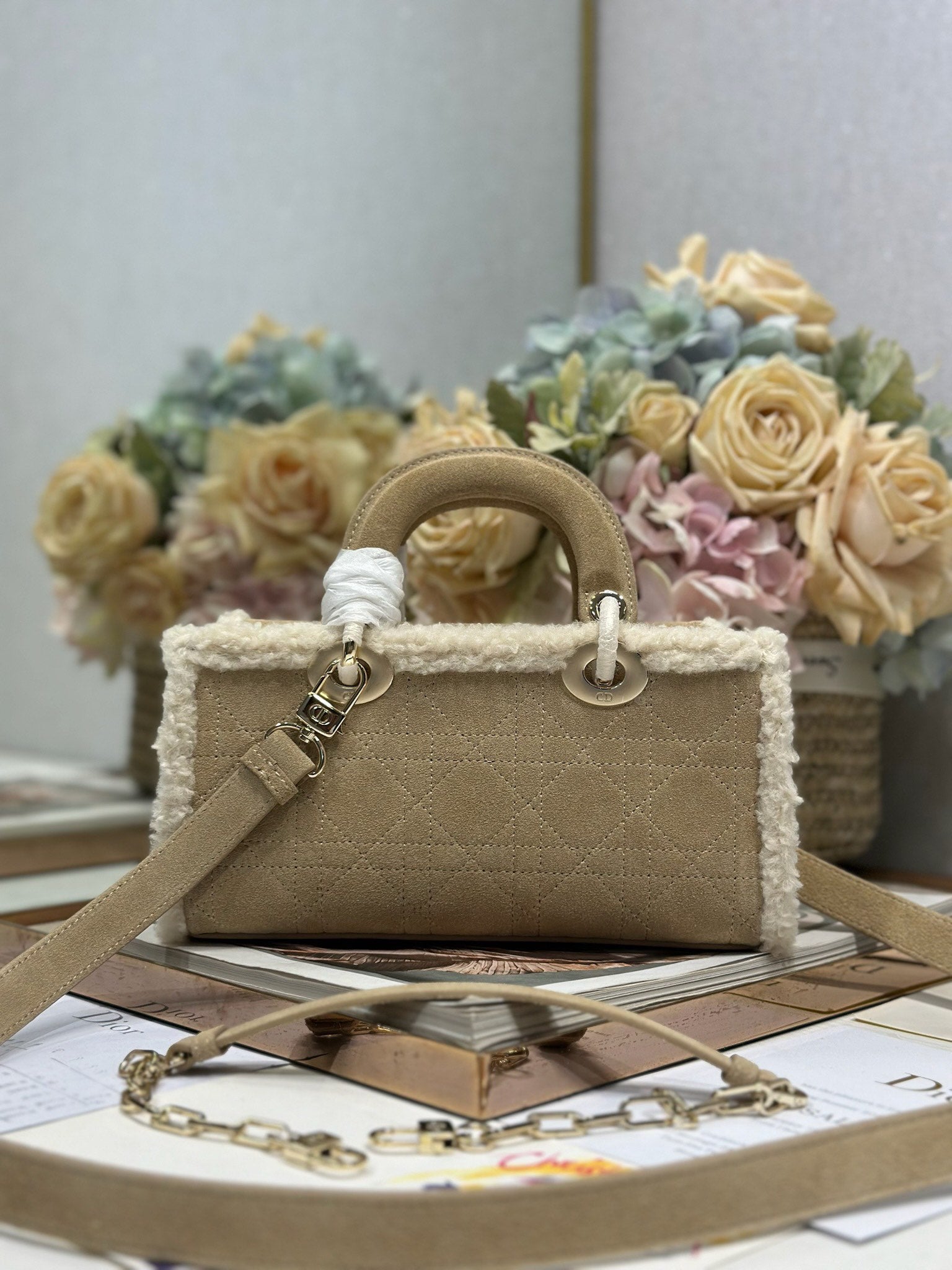 CD Lady D-Joy 22.5 Camel Cowhide And Fur Gold Hardware