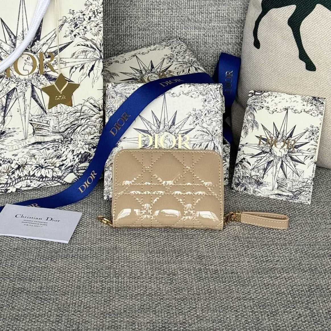 CD Logo Caro 11cm Compact Wallet Shiny Beige Calfskin