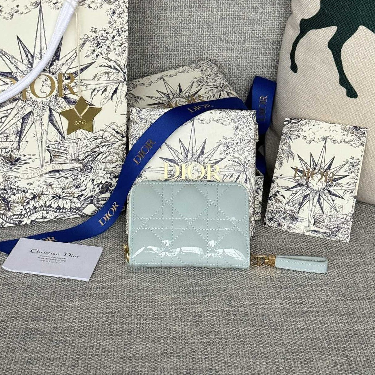 CD Logo Caro 11cm Compact Wallet Shiny Cloud Blue Calfskin